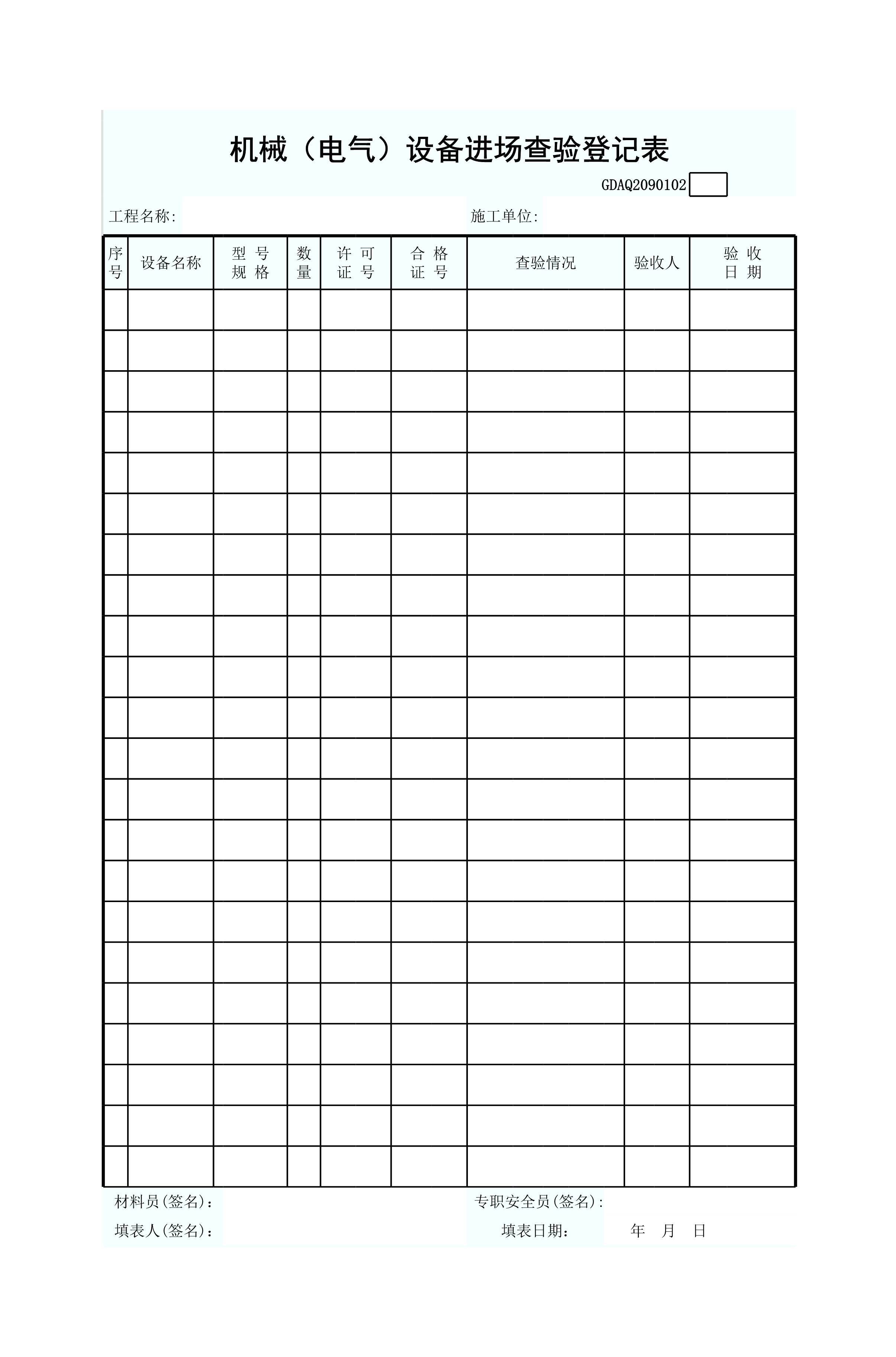 / 机械电气设备进场查验登记表GDAQ2090102[表格]