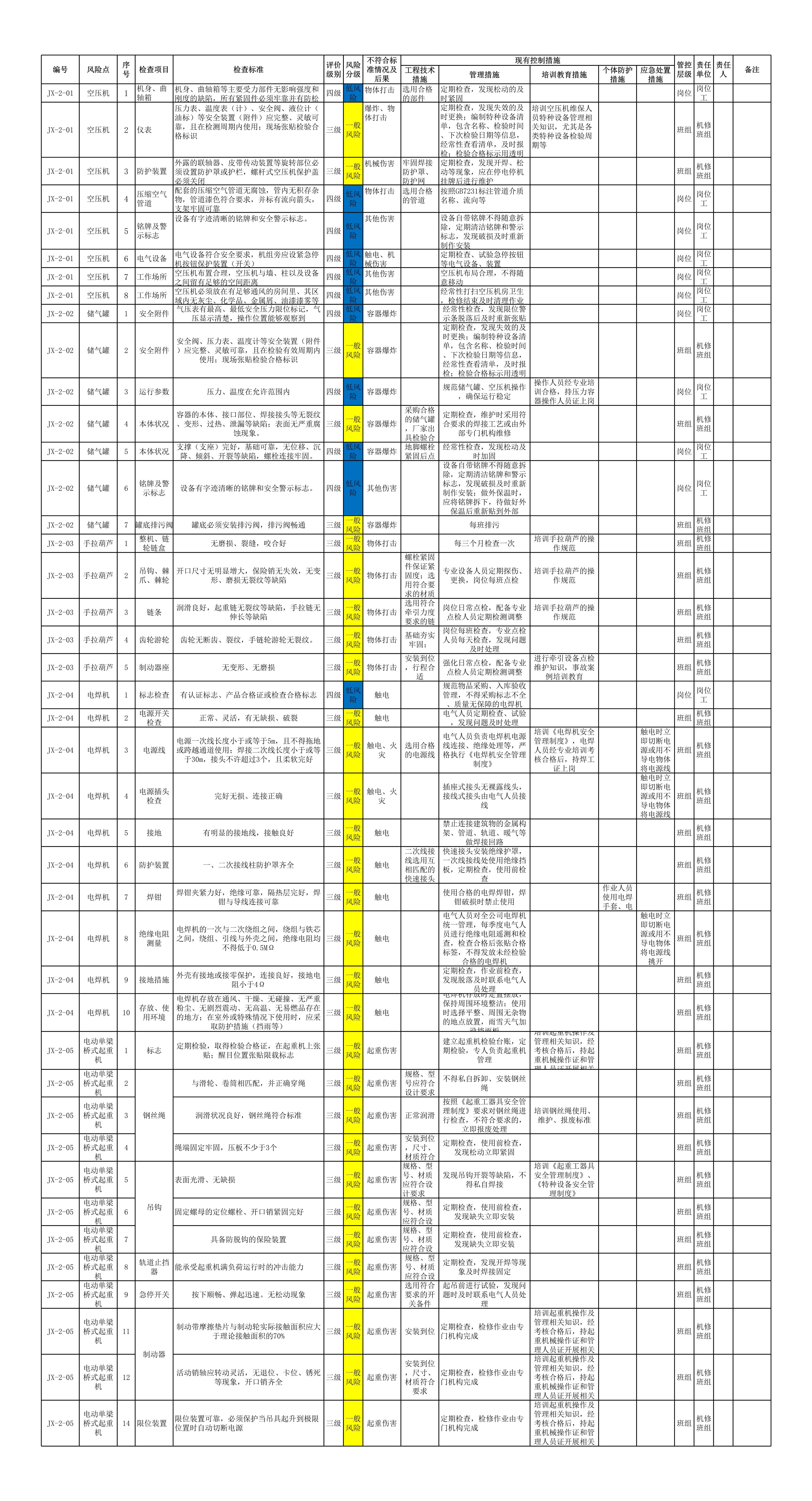 / 机修车间--设备设施风险分级管控清单[表格]