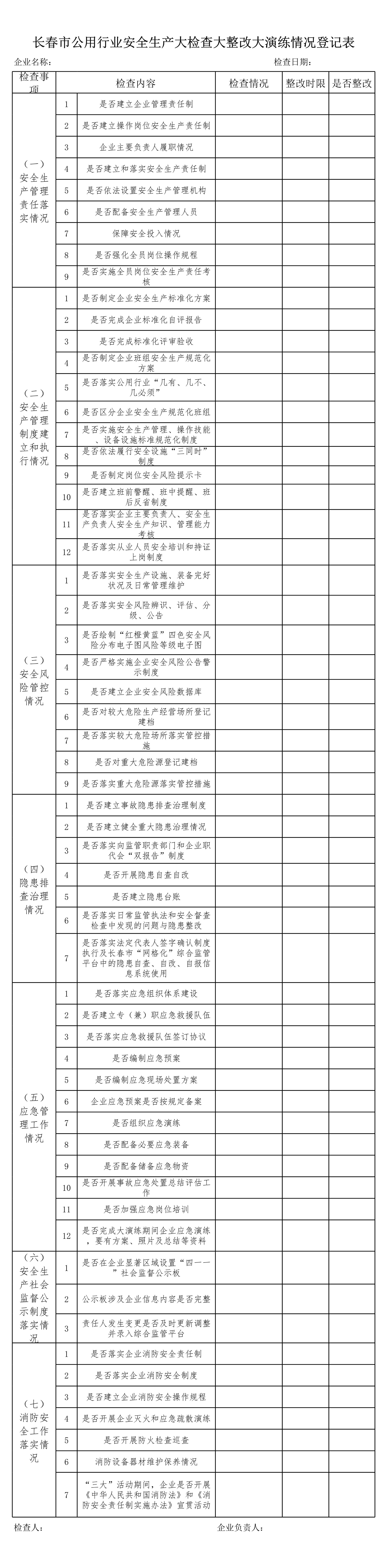 / 长春市公用行业大检查大整改大演练登记表[表格]