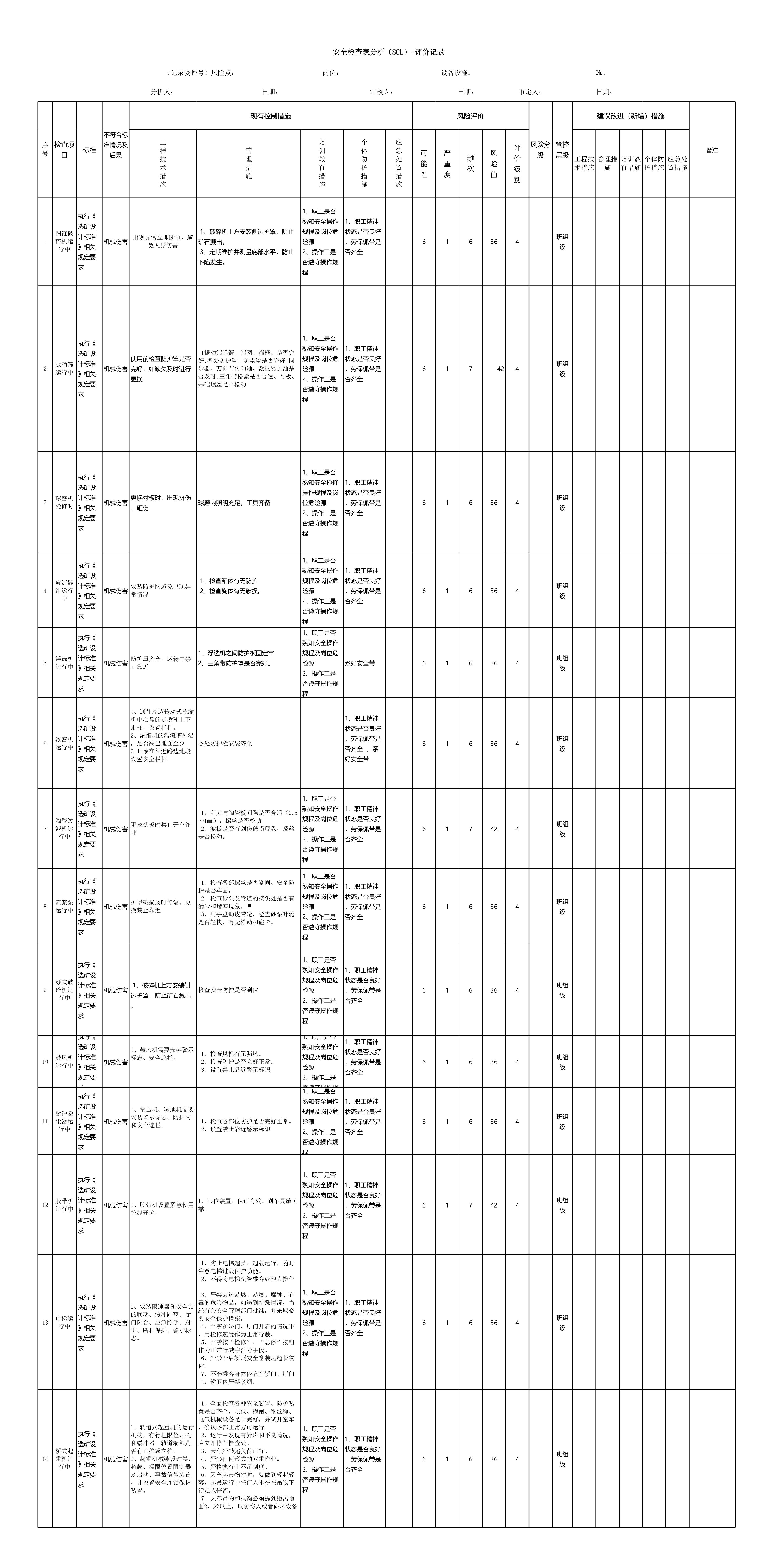 / 选矿安全检查分析(SCL)评价记录表[表格]