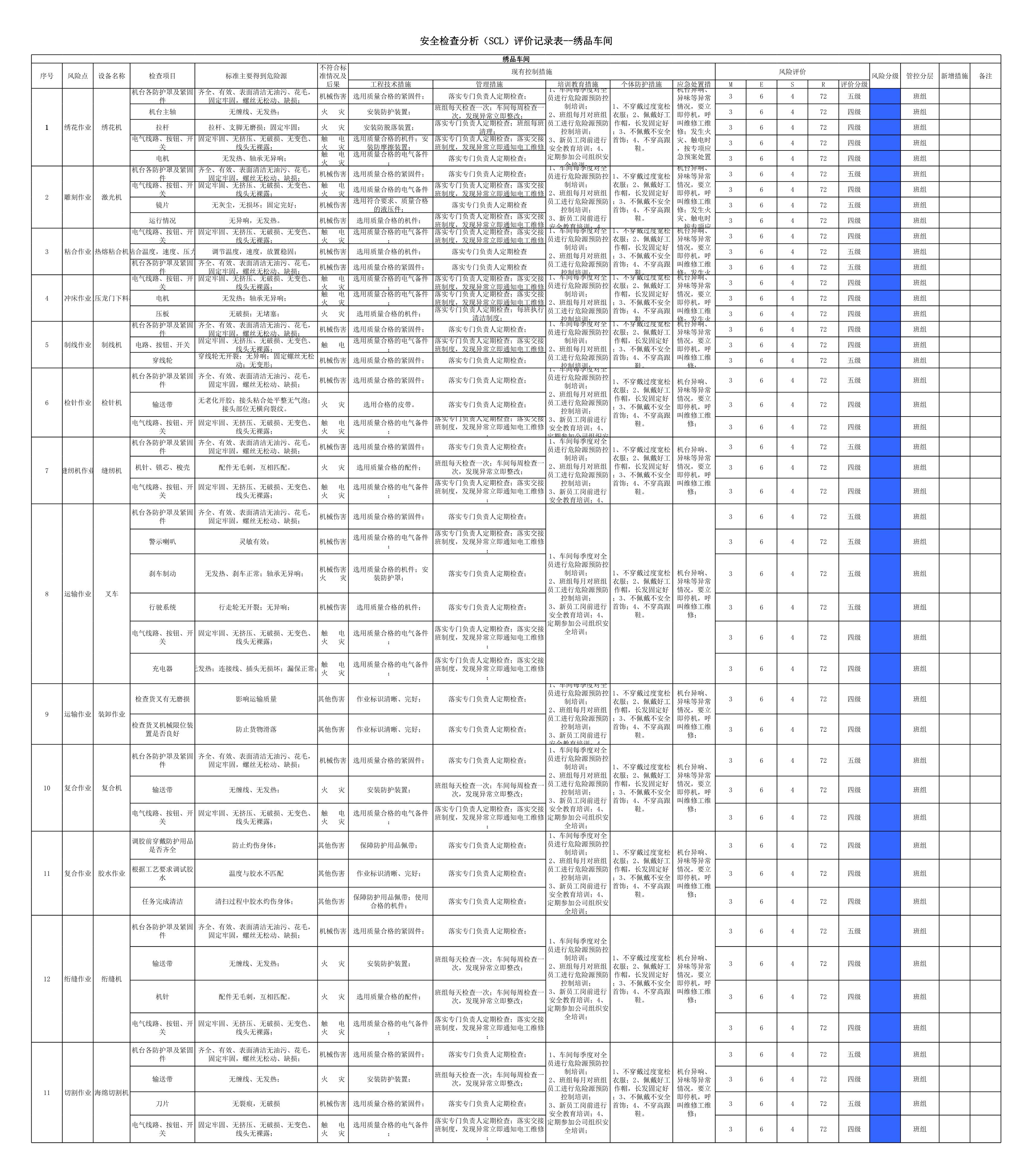 绣品车间作业活动分级管控清单[表格]