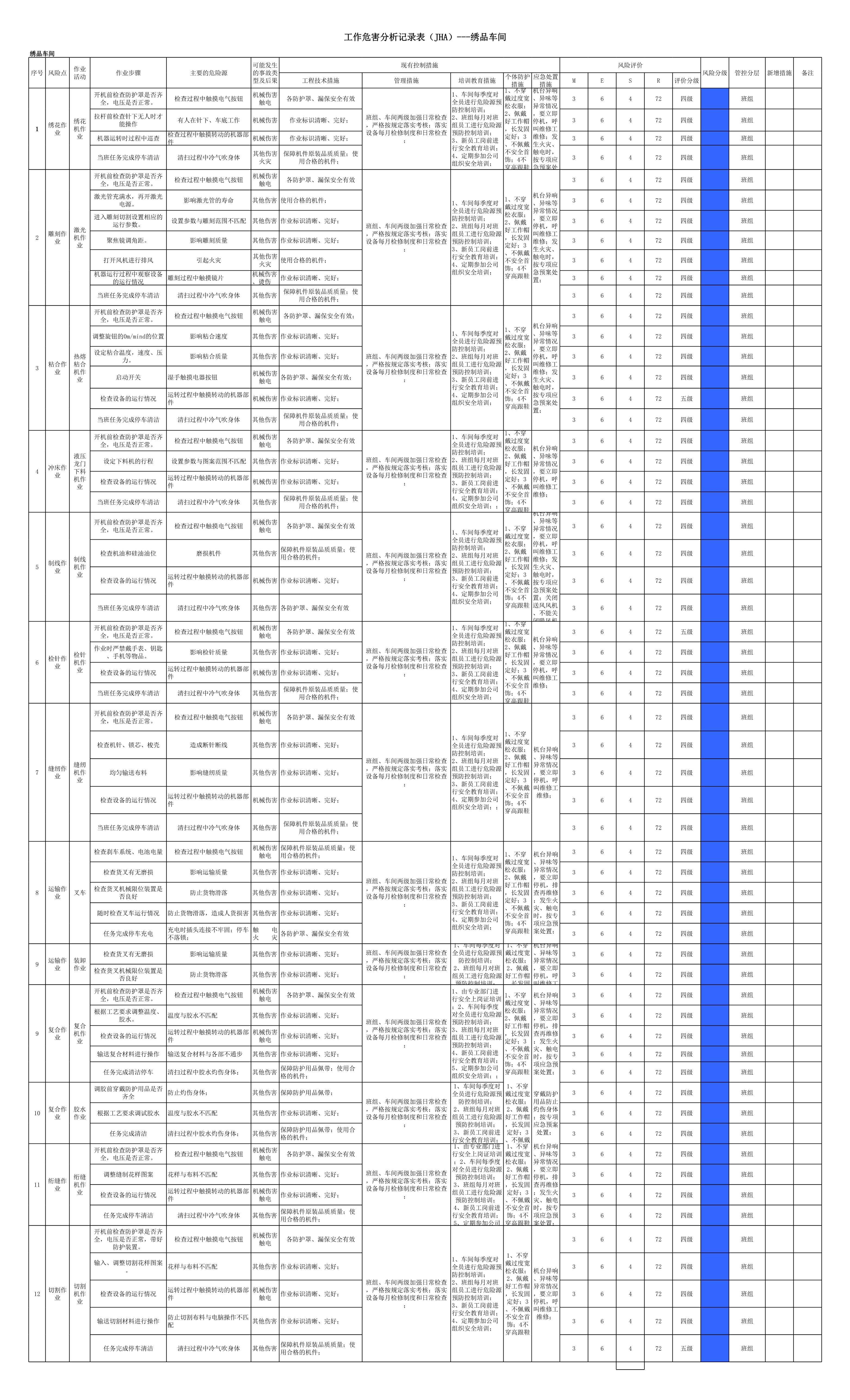/ 绣品车间作业活动分析记录[表格]