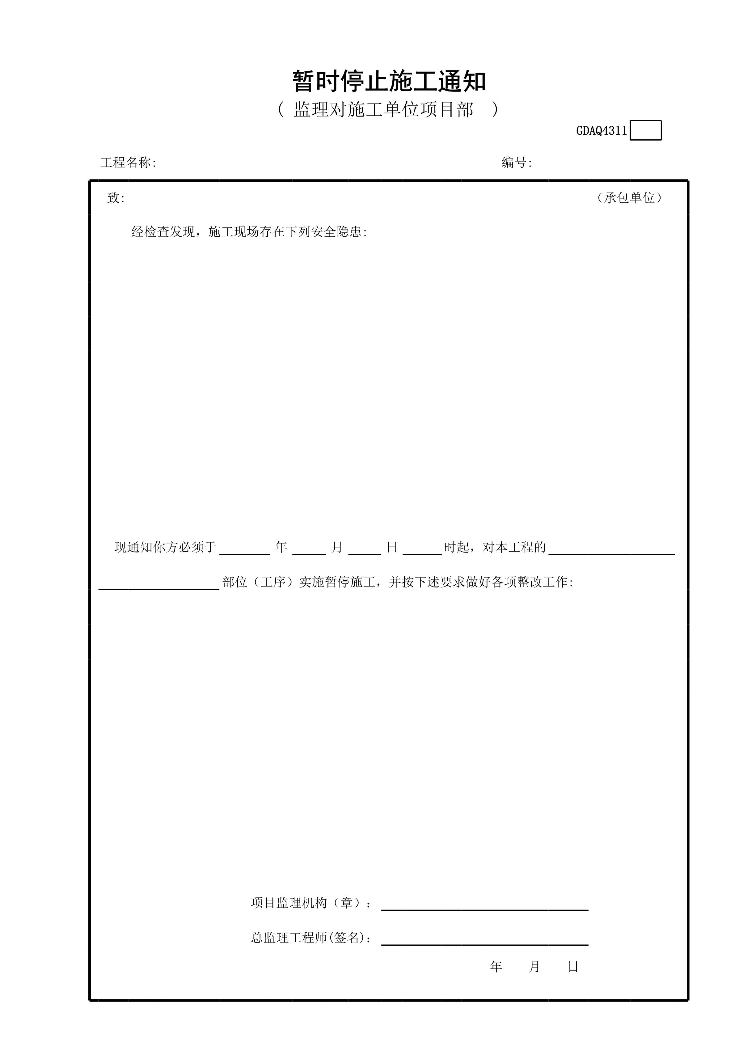 / 暂时停止施工通知GDAQ4311[表格]
