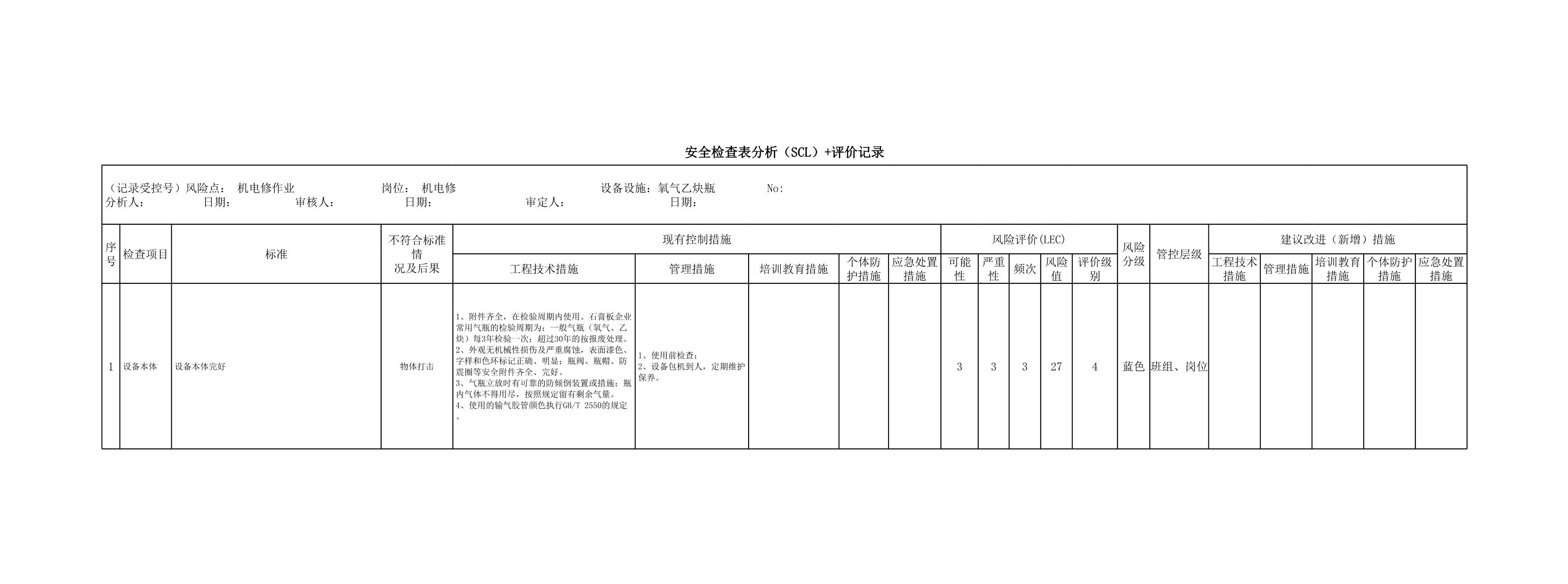 氧气,乙炔瓶(SCL)评价记录[表格]