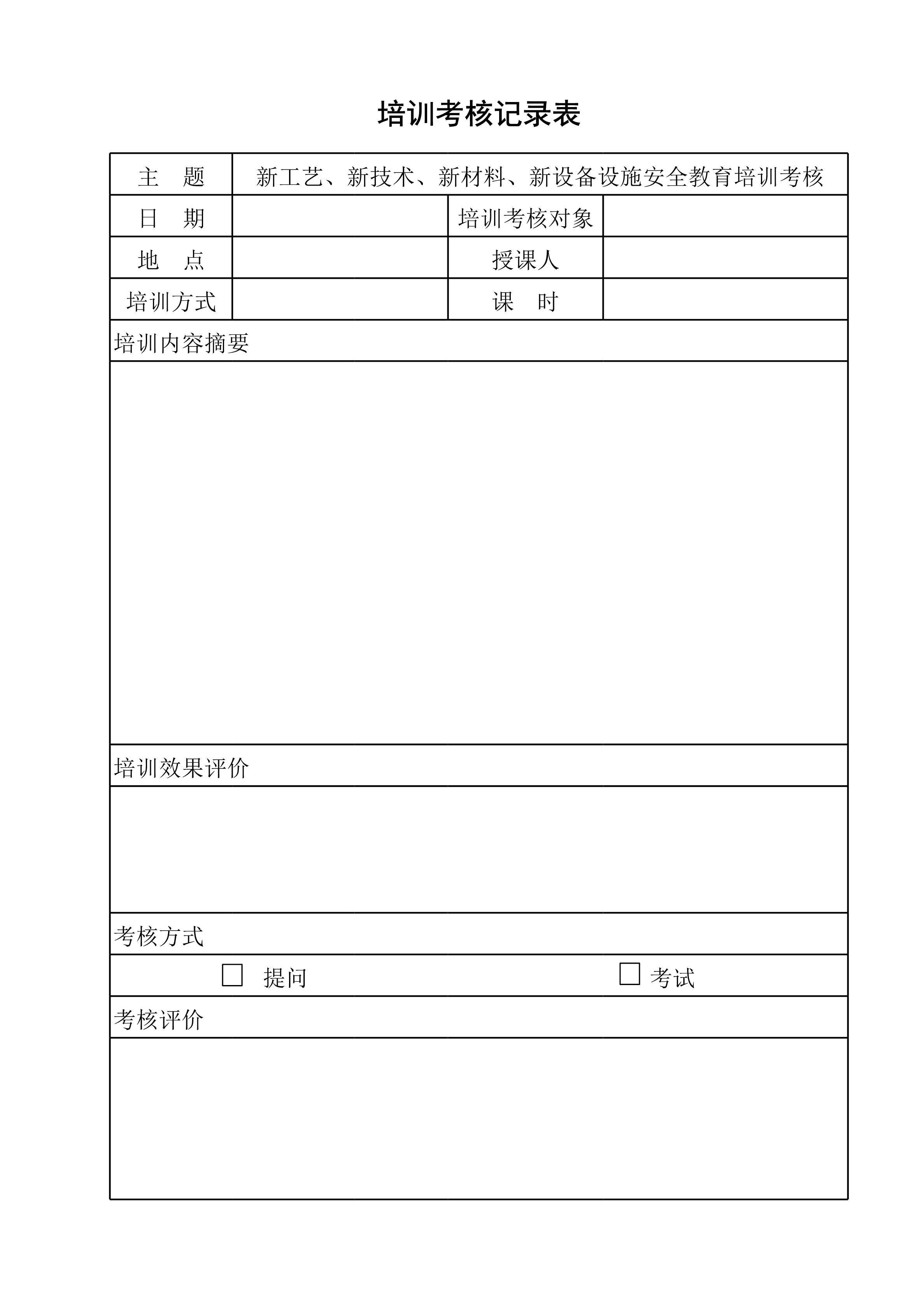 新工艺新技术新材料新设备设施安全教育培训考核表[表格]