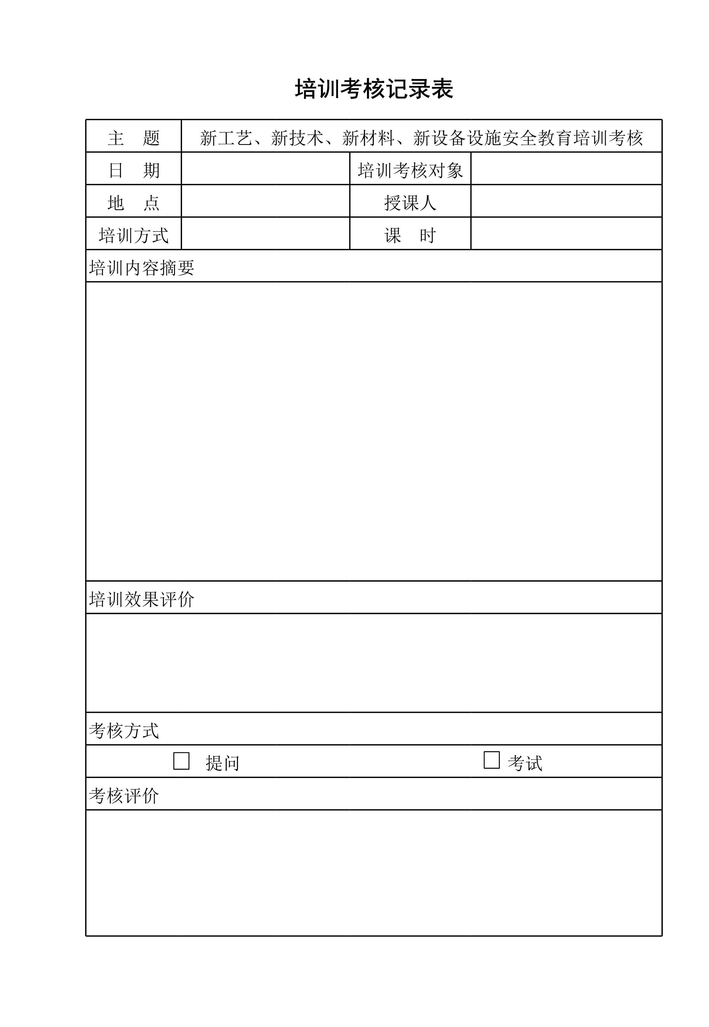 / 新工艺,新技术,新材料,新设备设施安全教育培训考核表[表格]