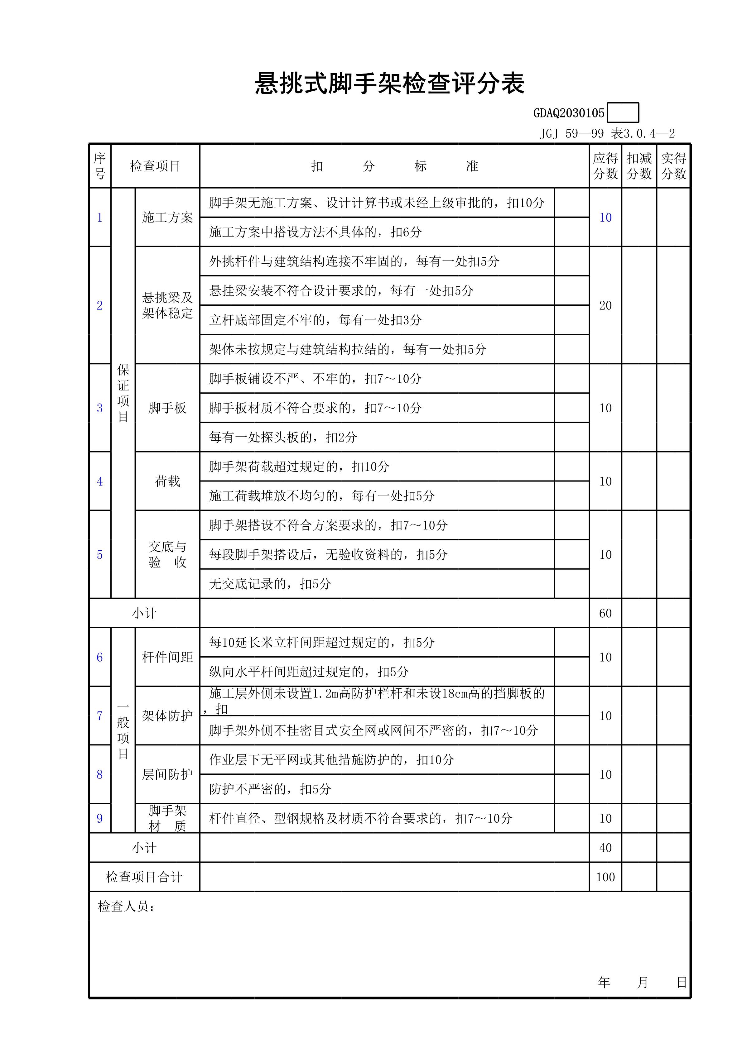 / 悬挑式脚手架检查评分表GDAQ2030105[表格]