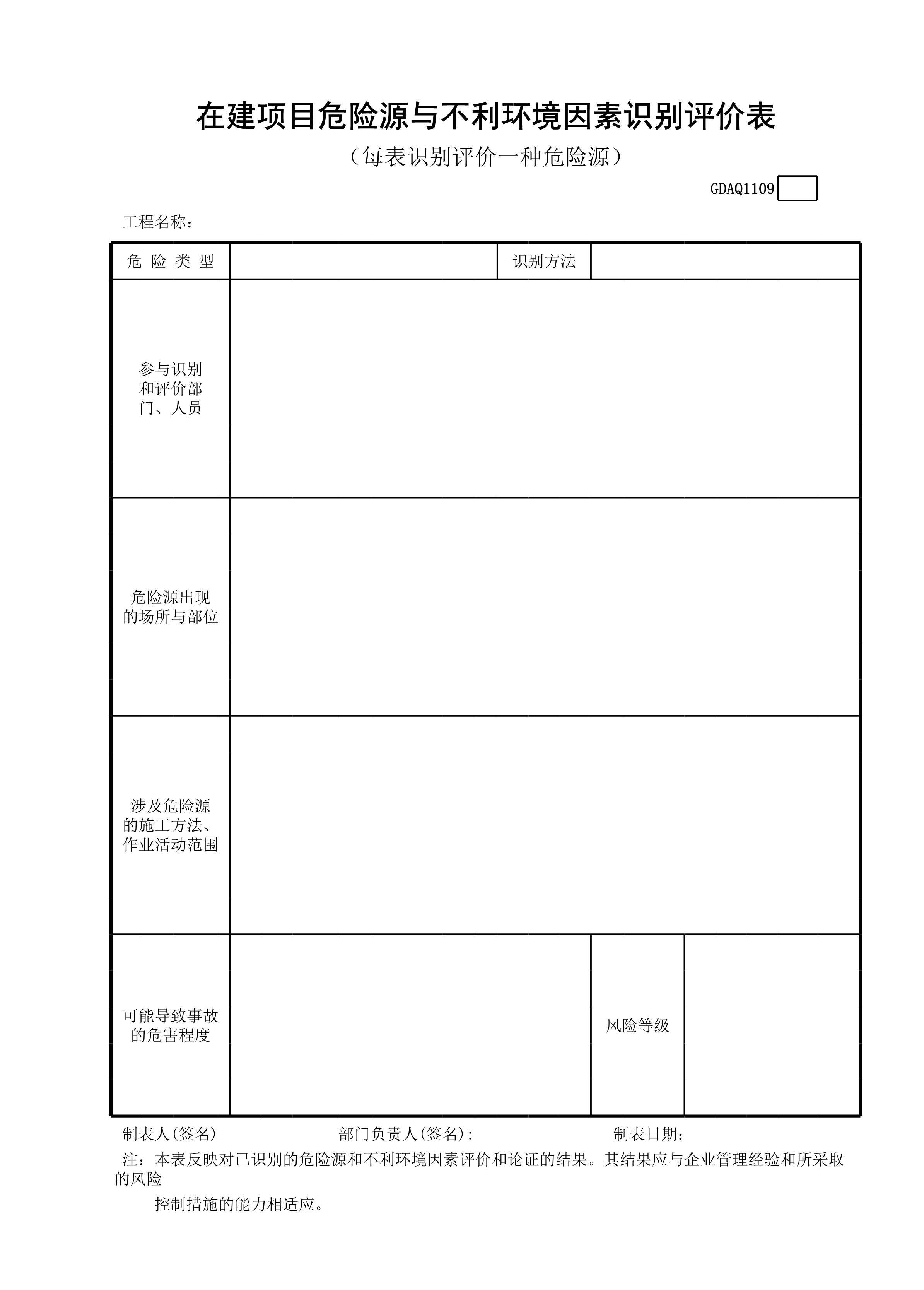 / 在建项目危险源与不利环境因素识别评价表GDAQ1109[表格]