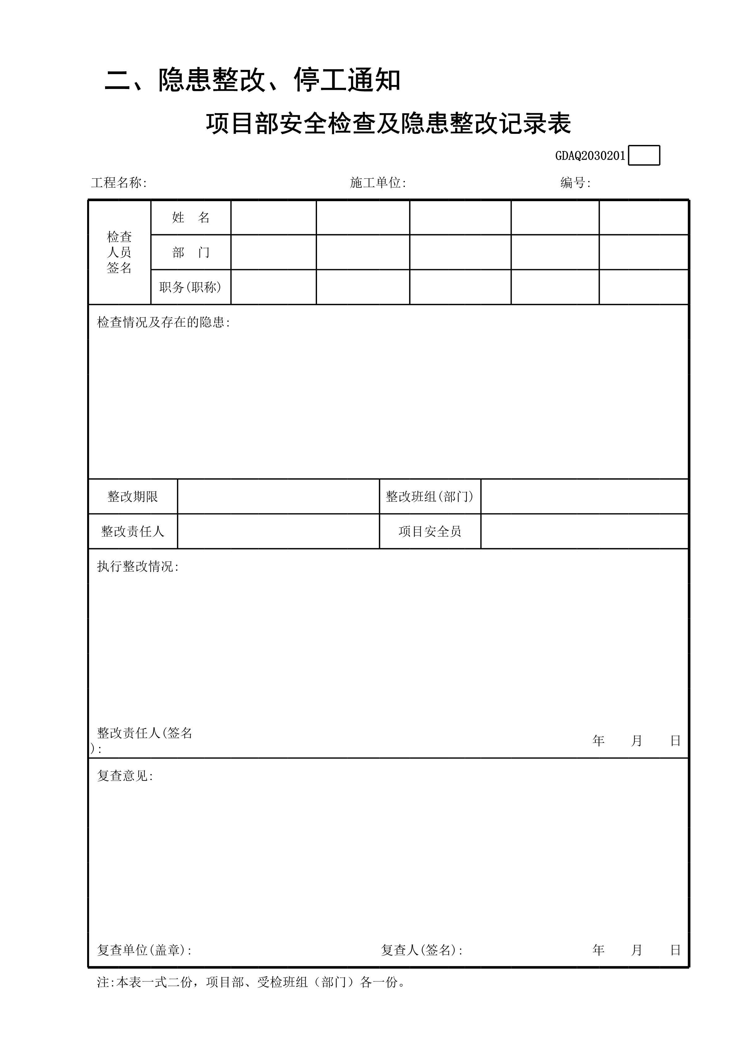 / 项目部安全检查及隐患整改记录表GDAQ2030201[表格]