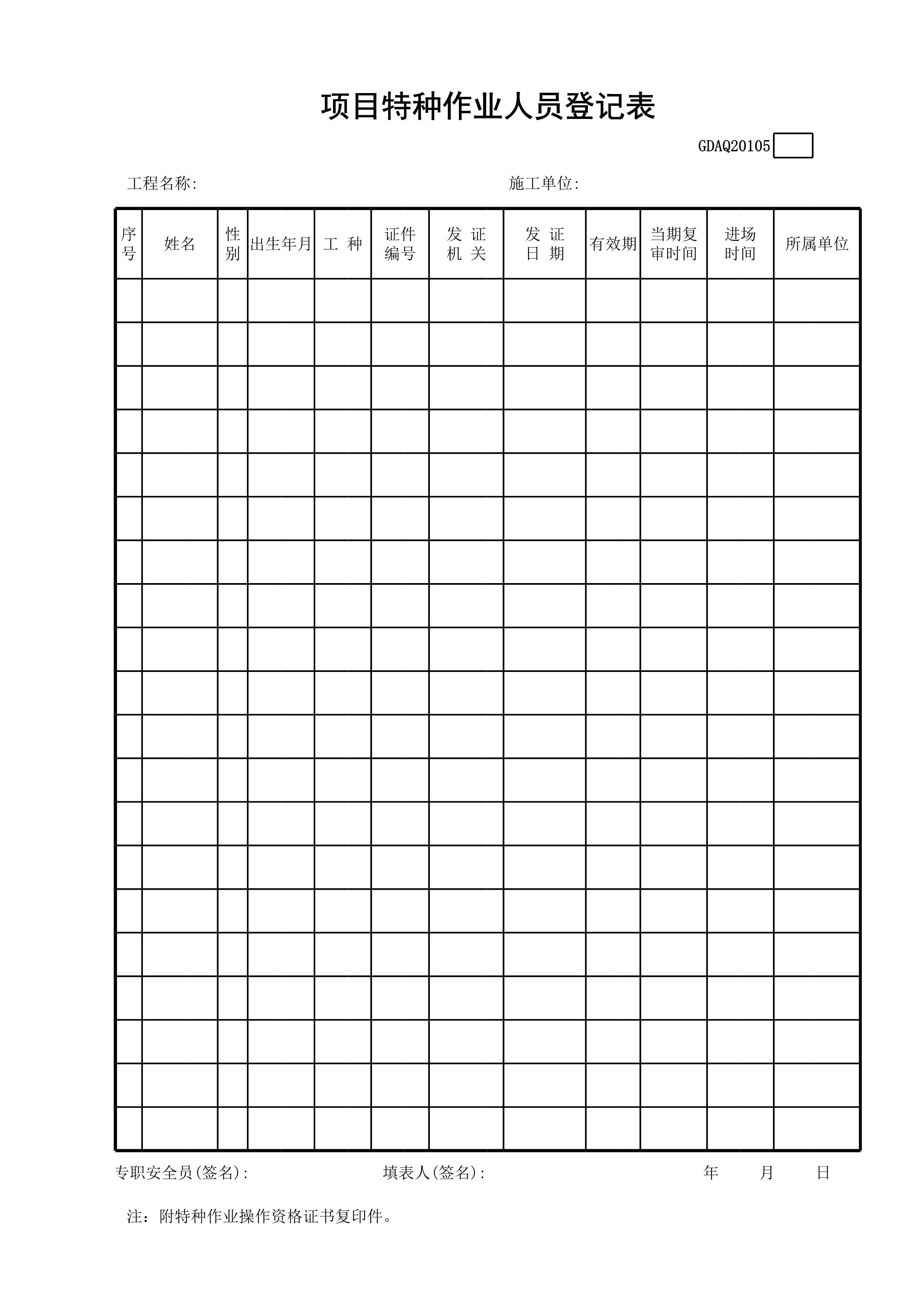 / 项目特种作业人员登记表GDAQ20105[表格]