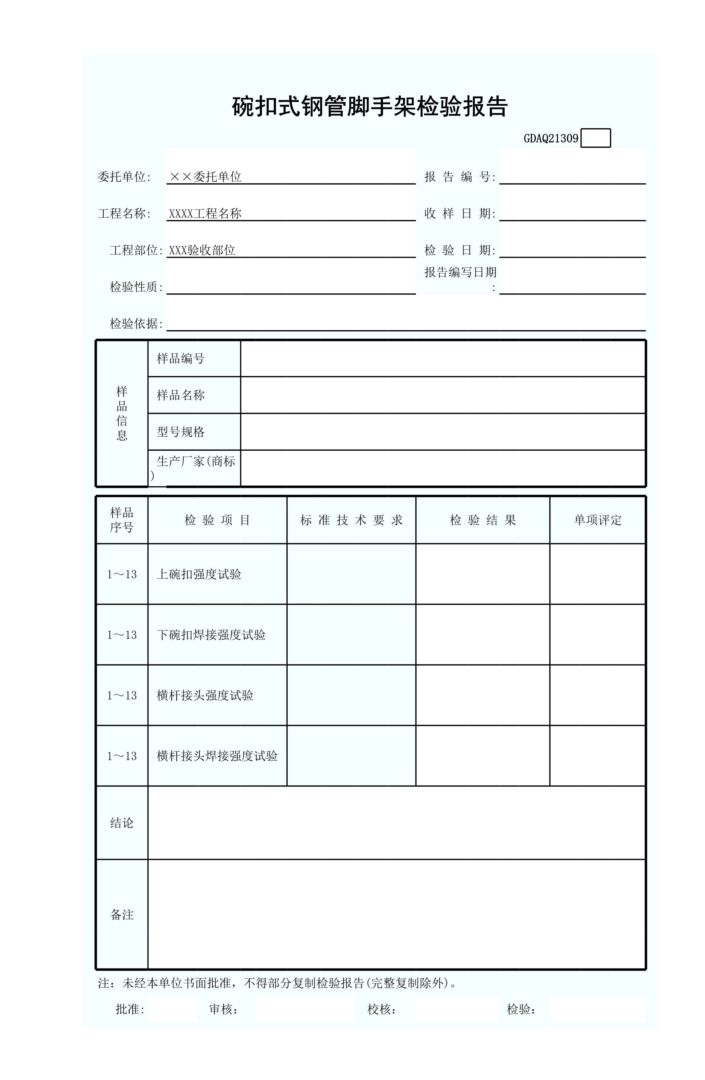 / 碗扣式钢管脚手架检验报告GDAQ21309[表格]