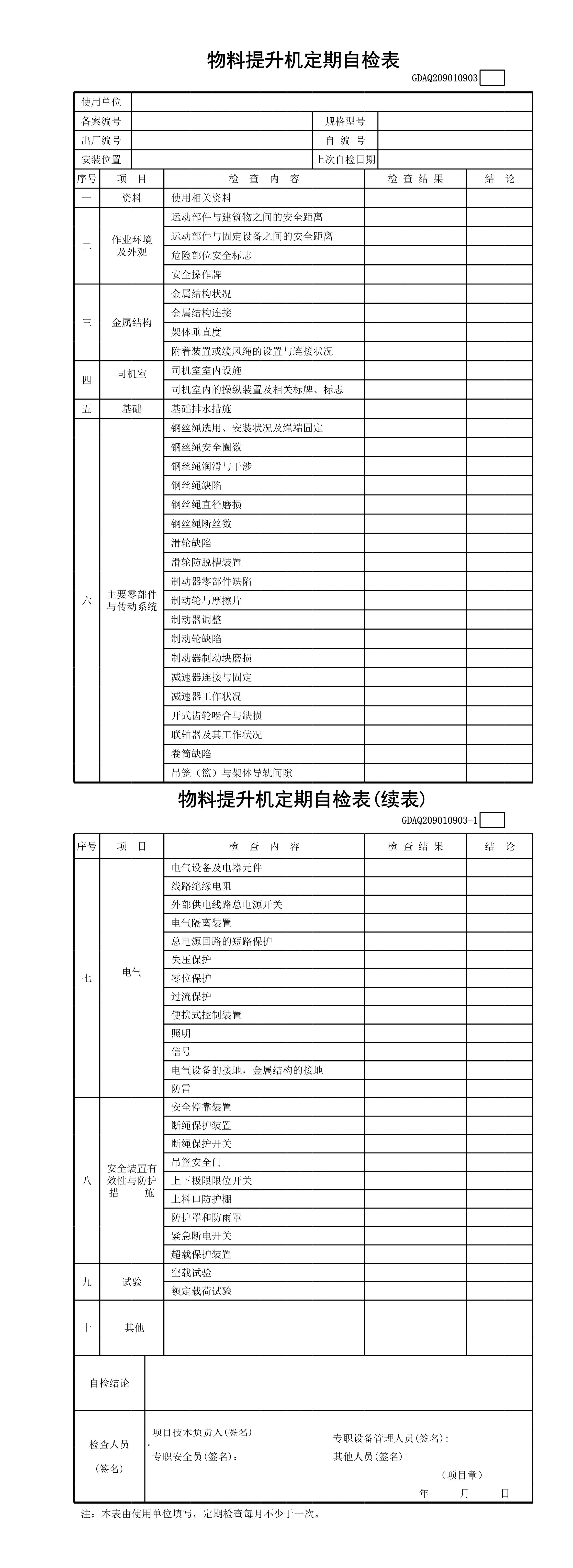 物料提升机定期自检表(含续表)GDAQ209010903[表格]