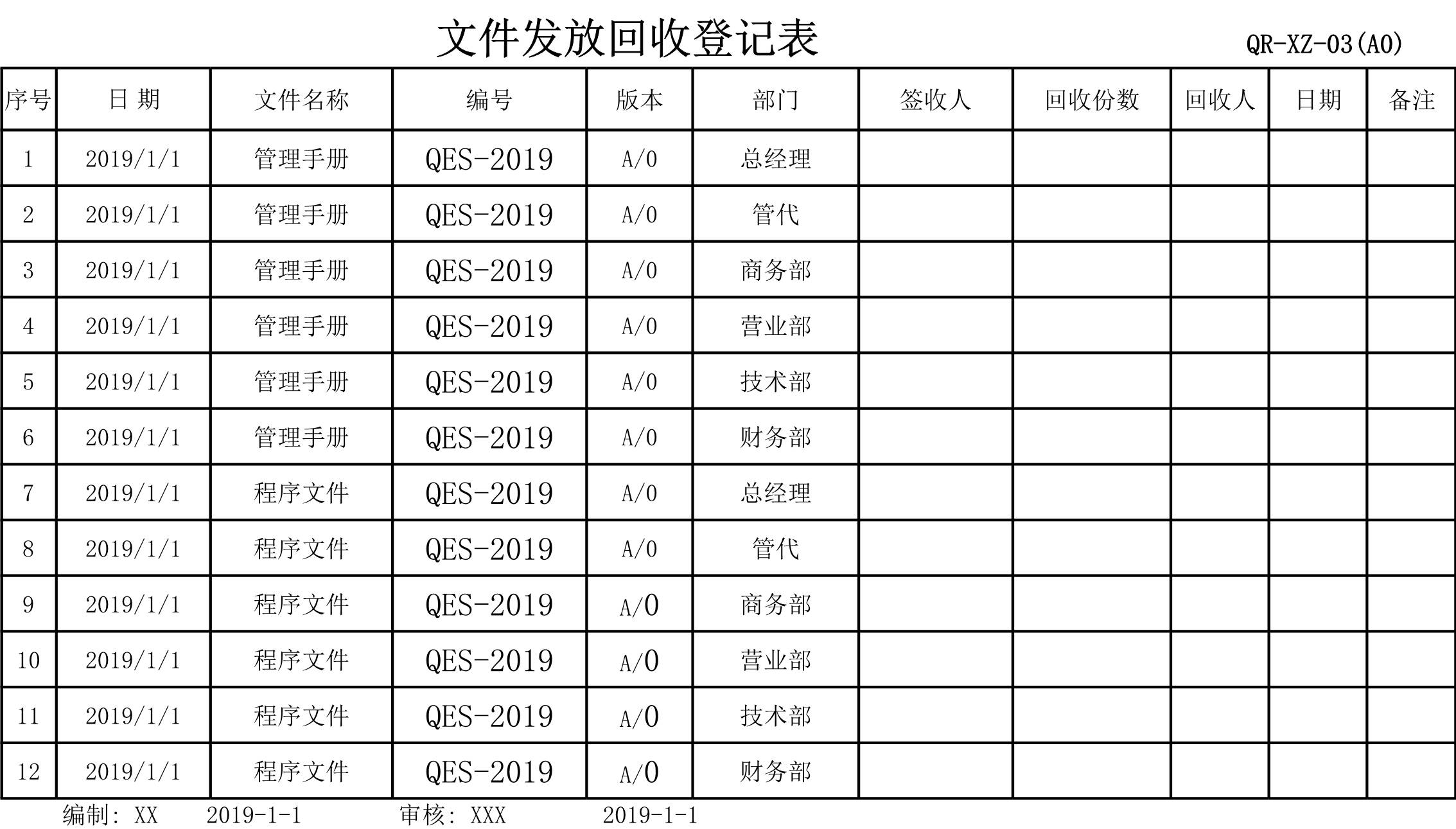 / 文件发放回收登记表[表格]