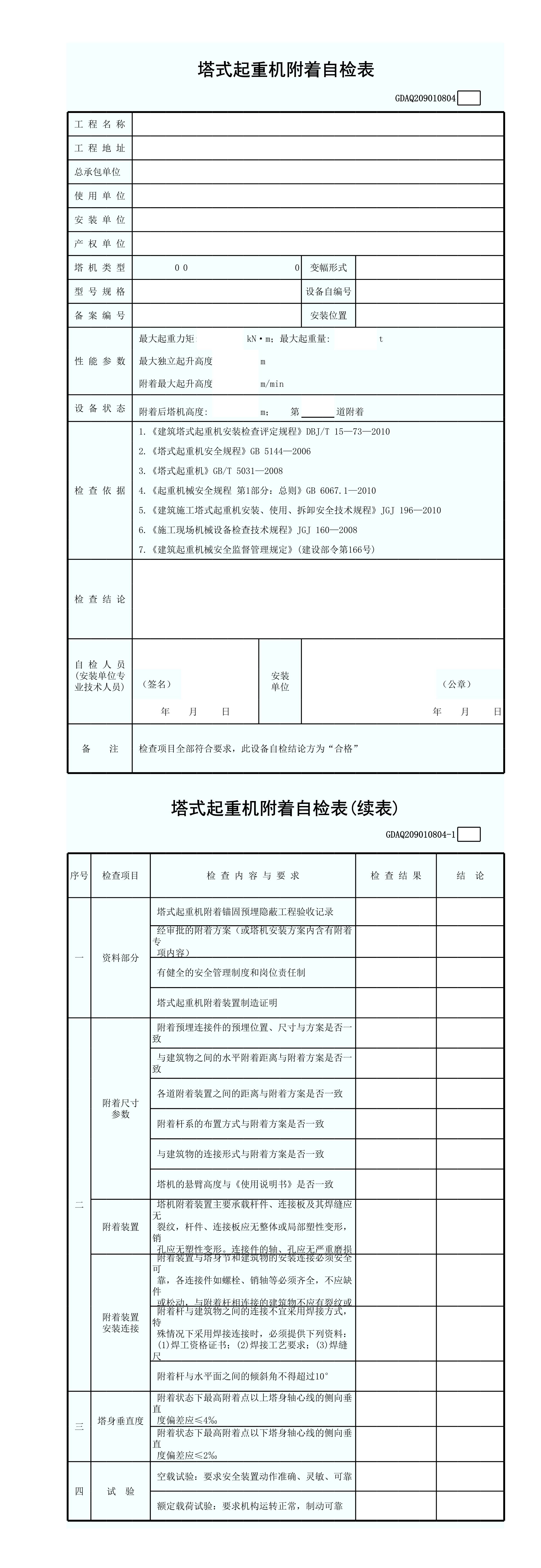 / 塔式起重机附着自检表GDAQ209010804[表格]