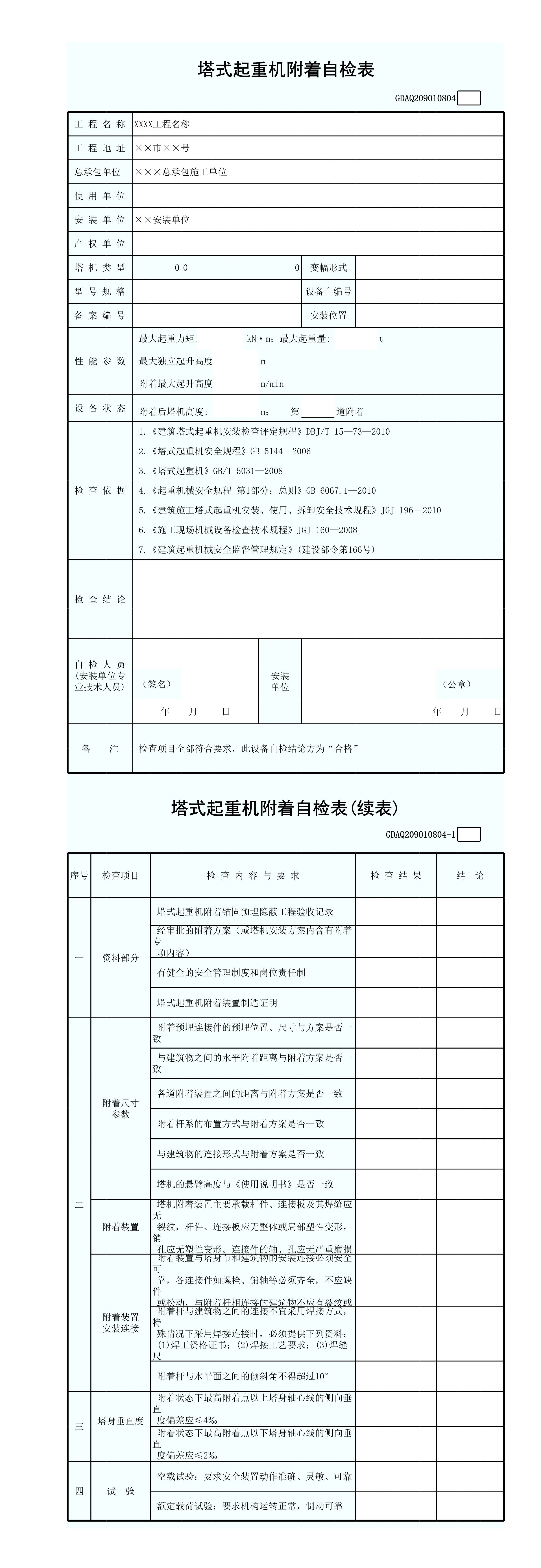 / 塔式起重机附着自检表(含续表)GDAQ209010804[表格]