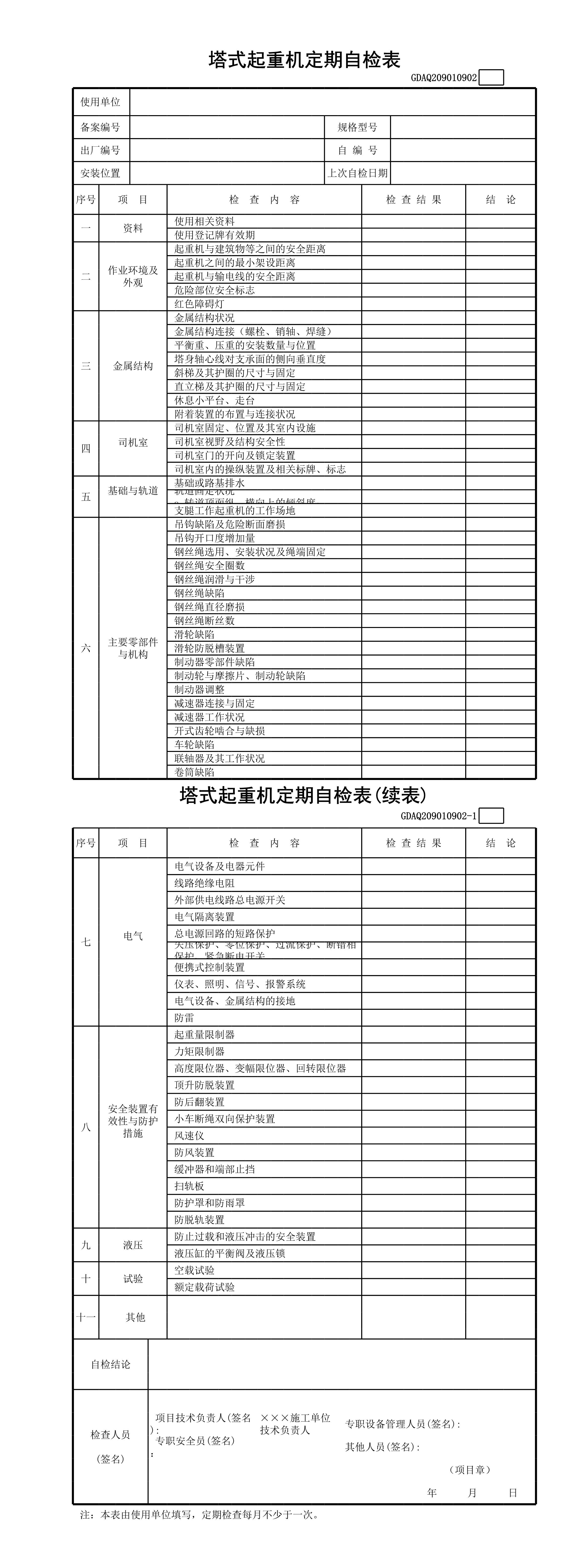 / 塔式起重机定期自检表(含续表)GDAQ209010902[表格]