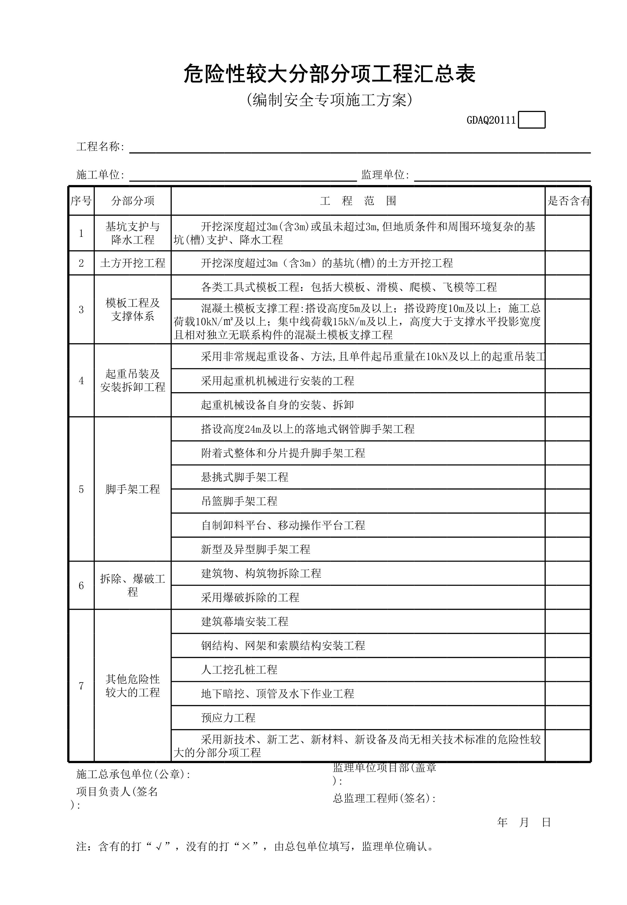 / 危险性较大分部分项工程汇总表GDAQ20111[表格]