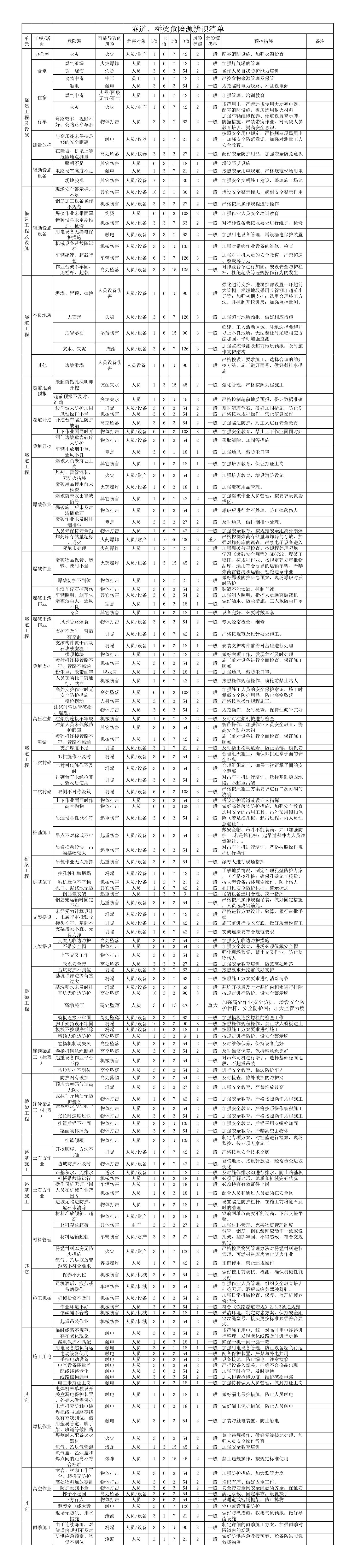 隧道,桥梁危险源辨识清单危险源辨识清单[表格]