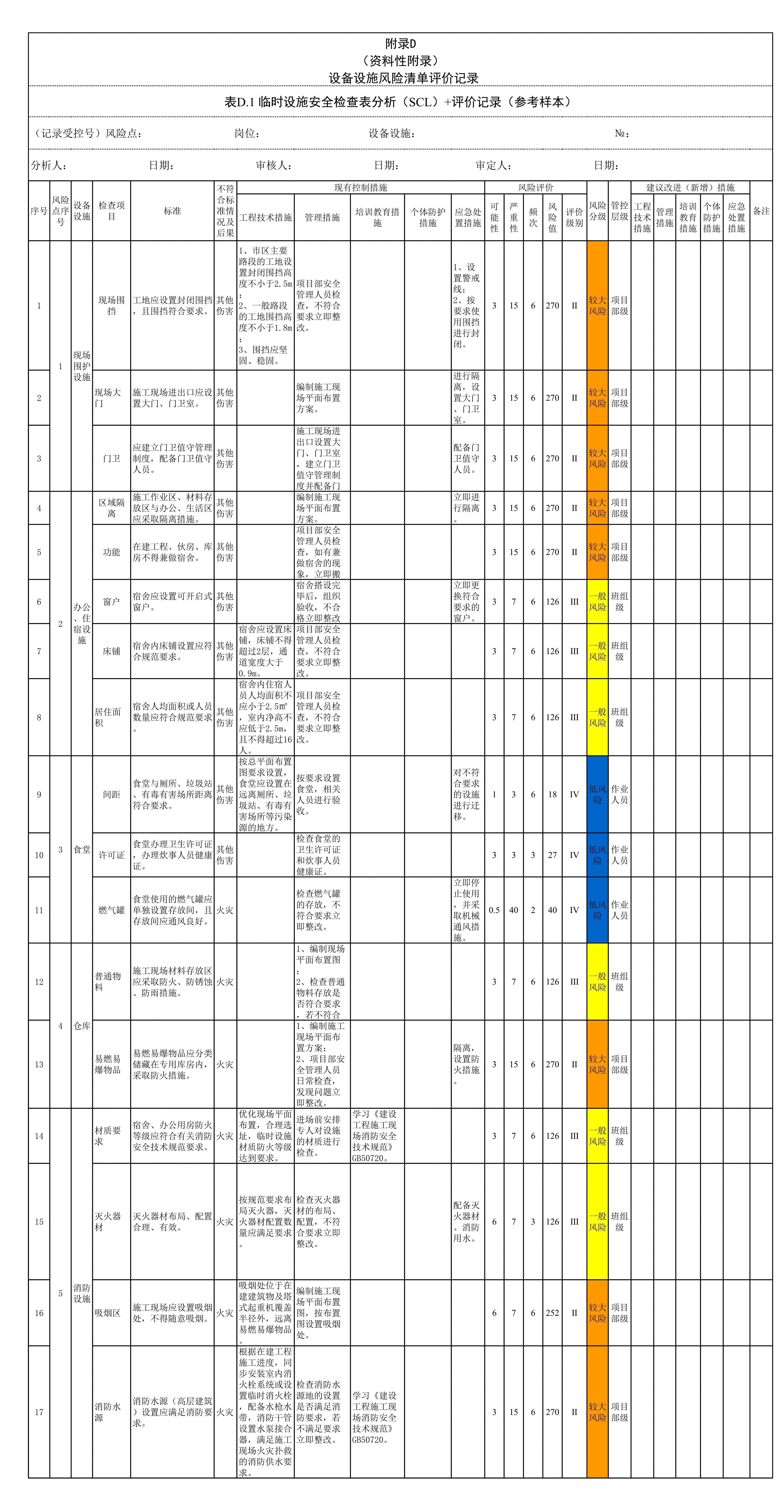 / 设备设施风险清单评价记录内含11项表格