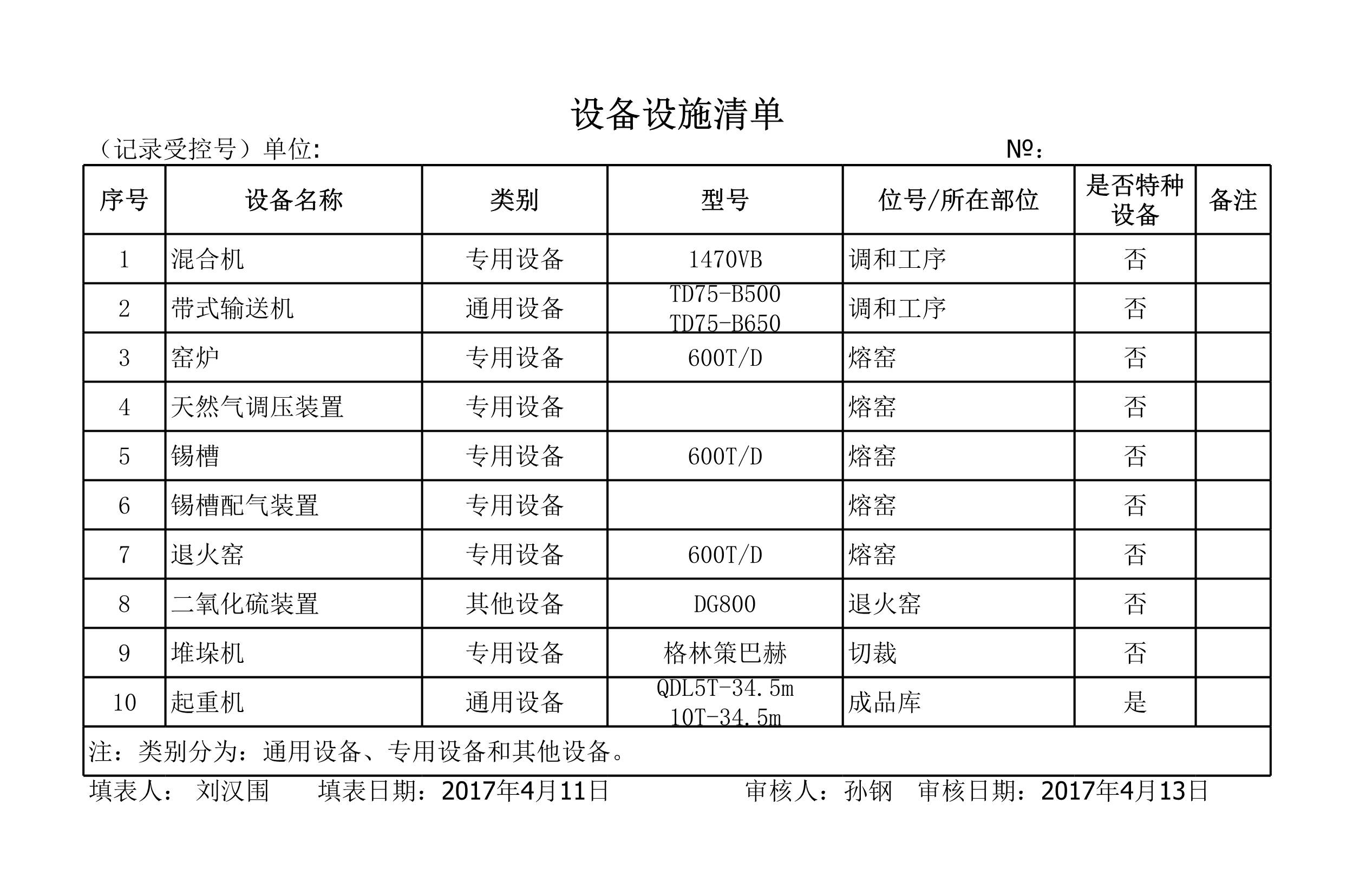 设备设施清单(示例)[表格]