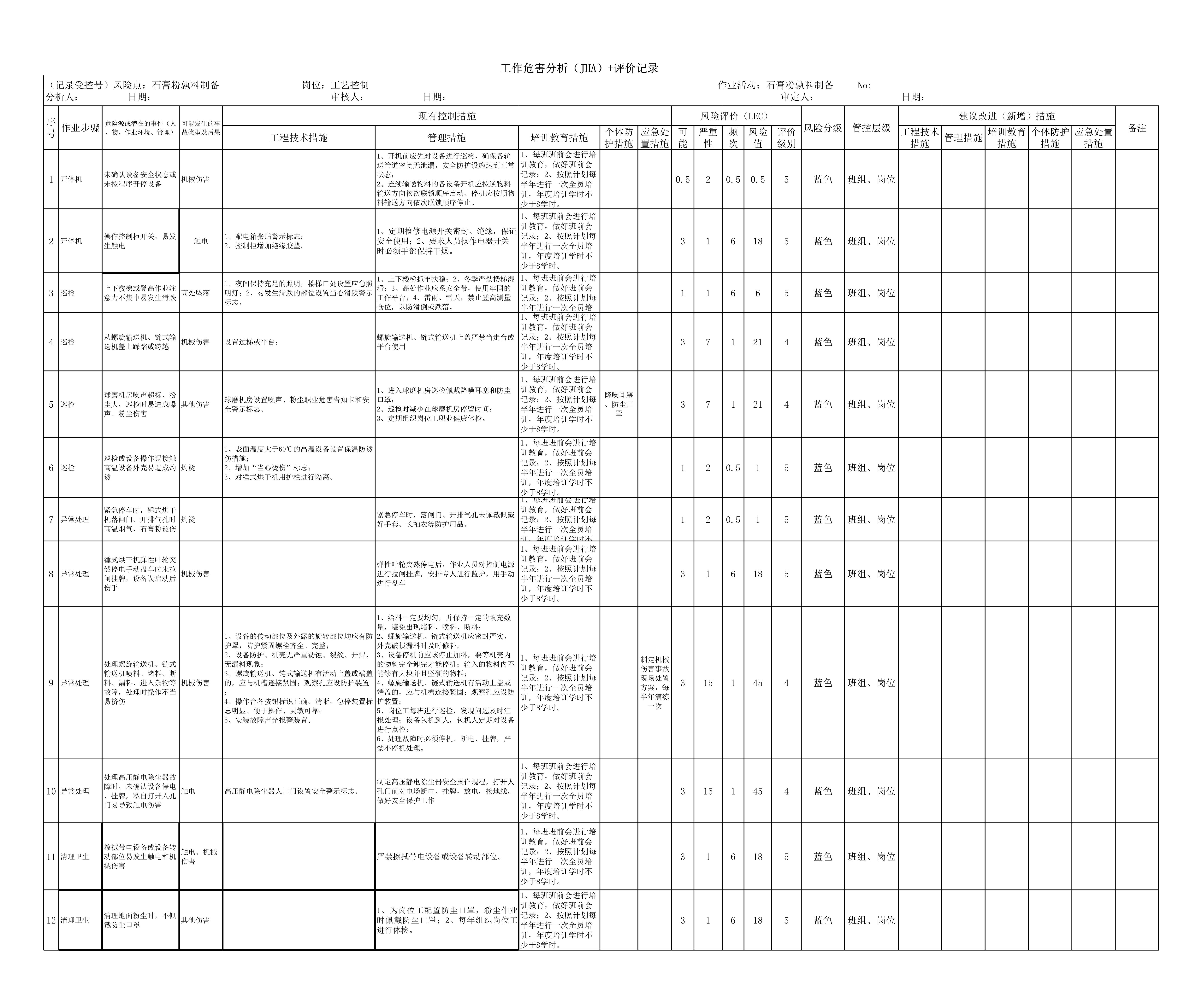/ 石膏粉孰料制备(JHA)评价记录[表格]