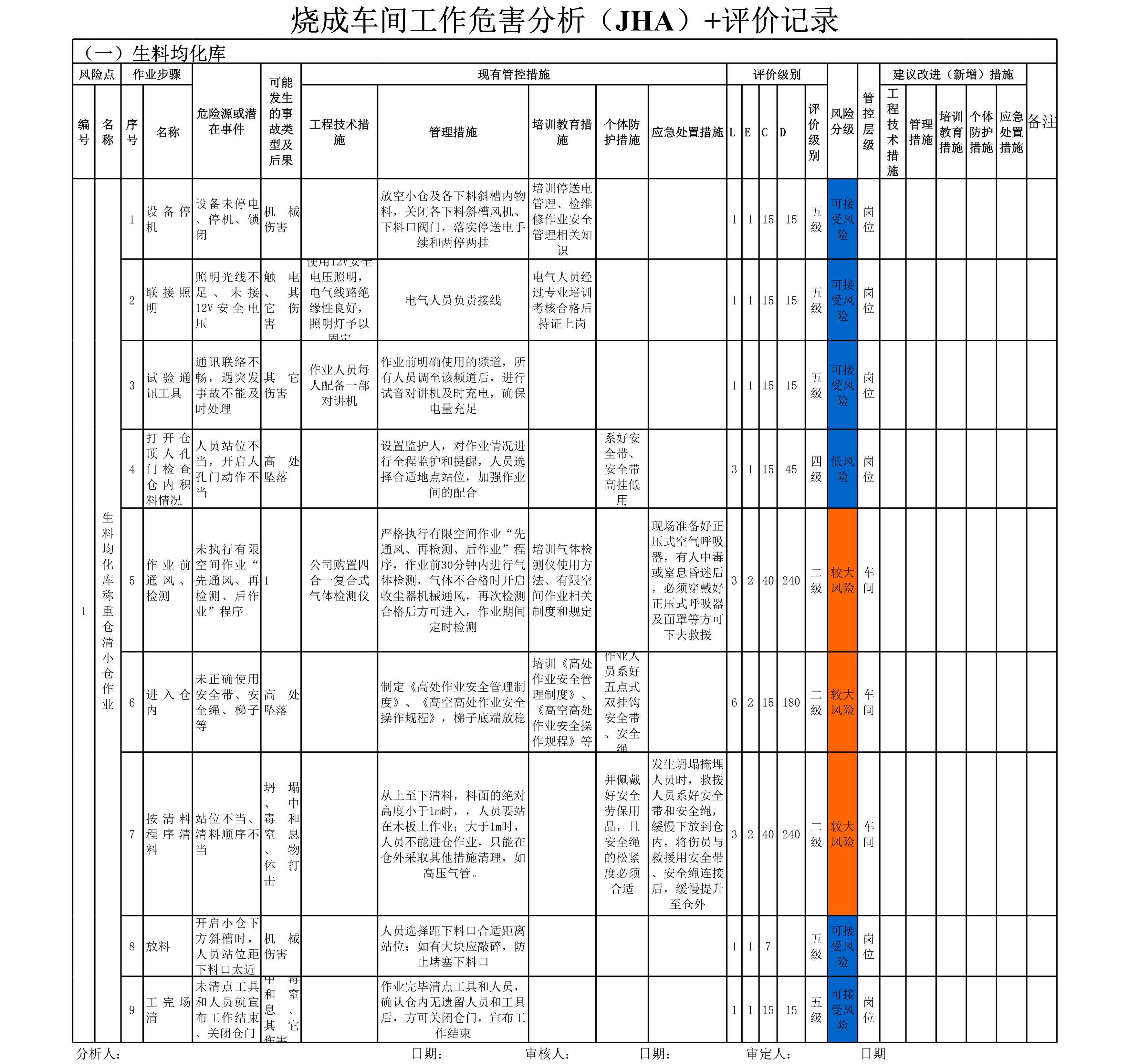 / 烧成车间工作危害分析(JHA)评价原始记录[表格]