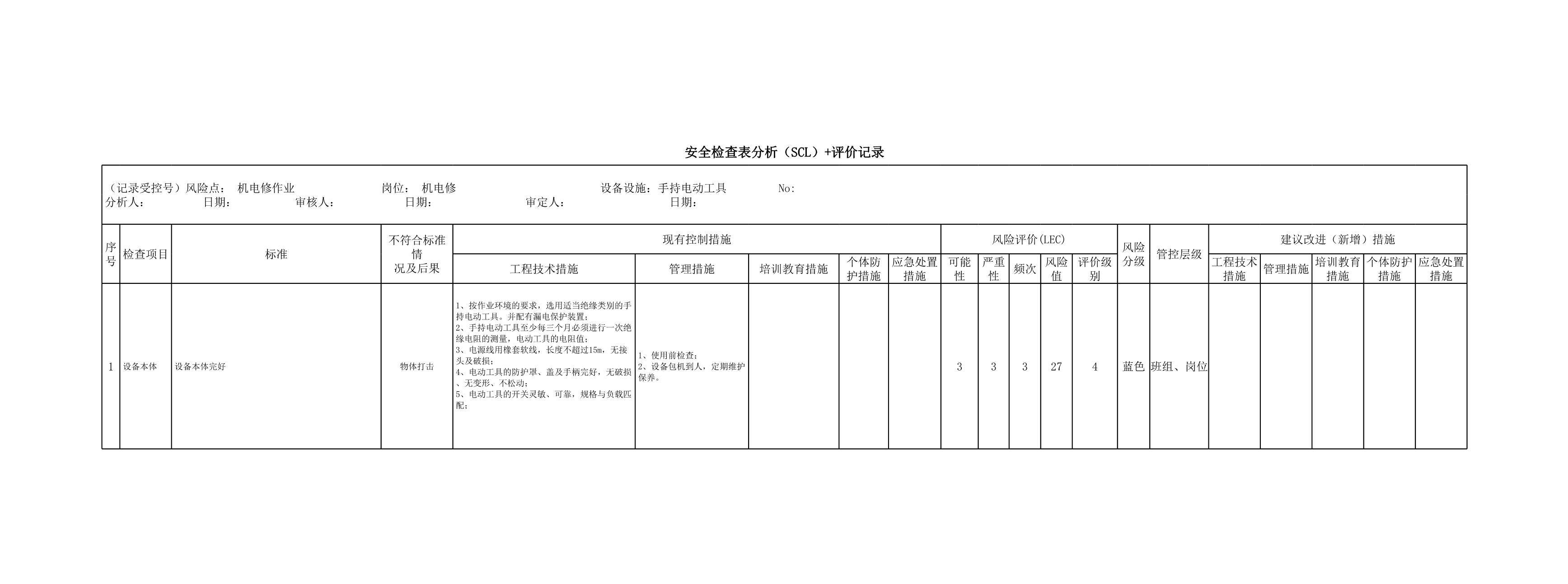 手持电动工具(SCL)评价记录[表格]