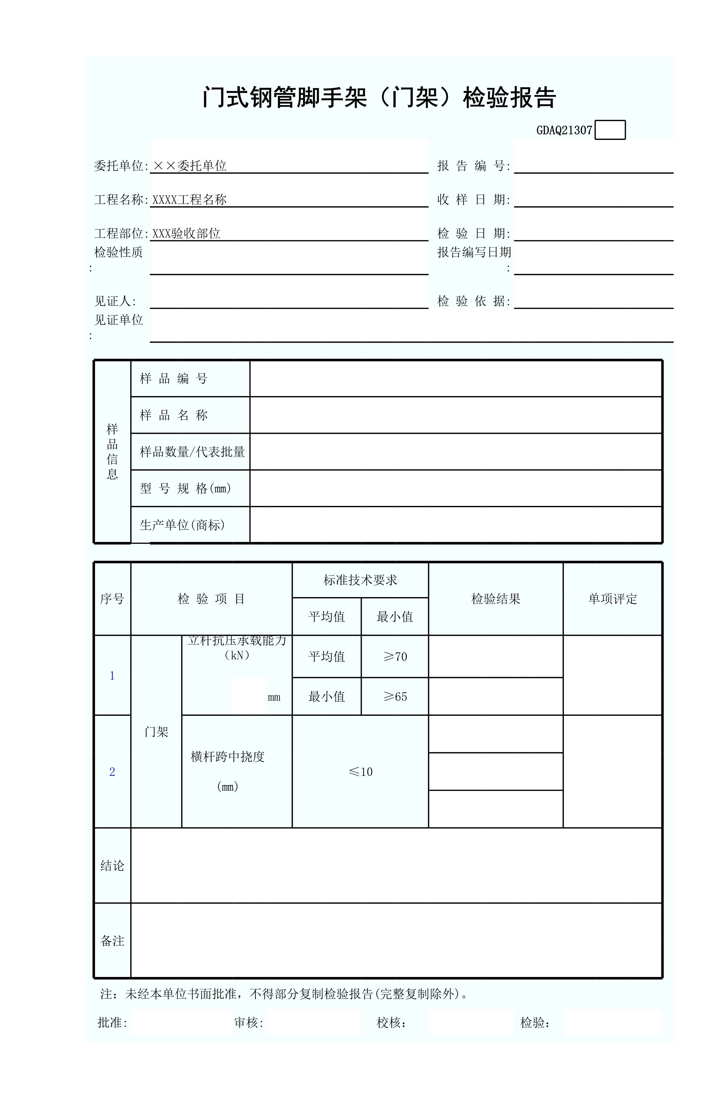 / 门式钢管脚手架(门架)检验报告GDAQ21307[表格]