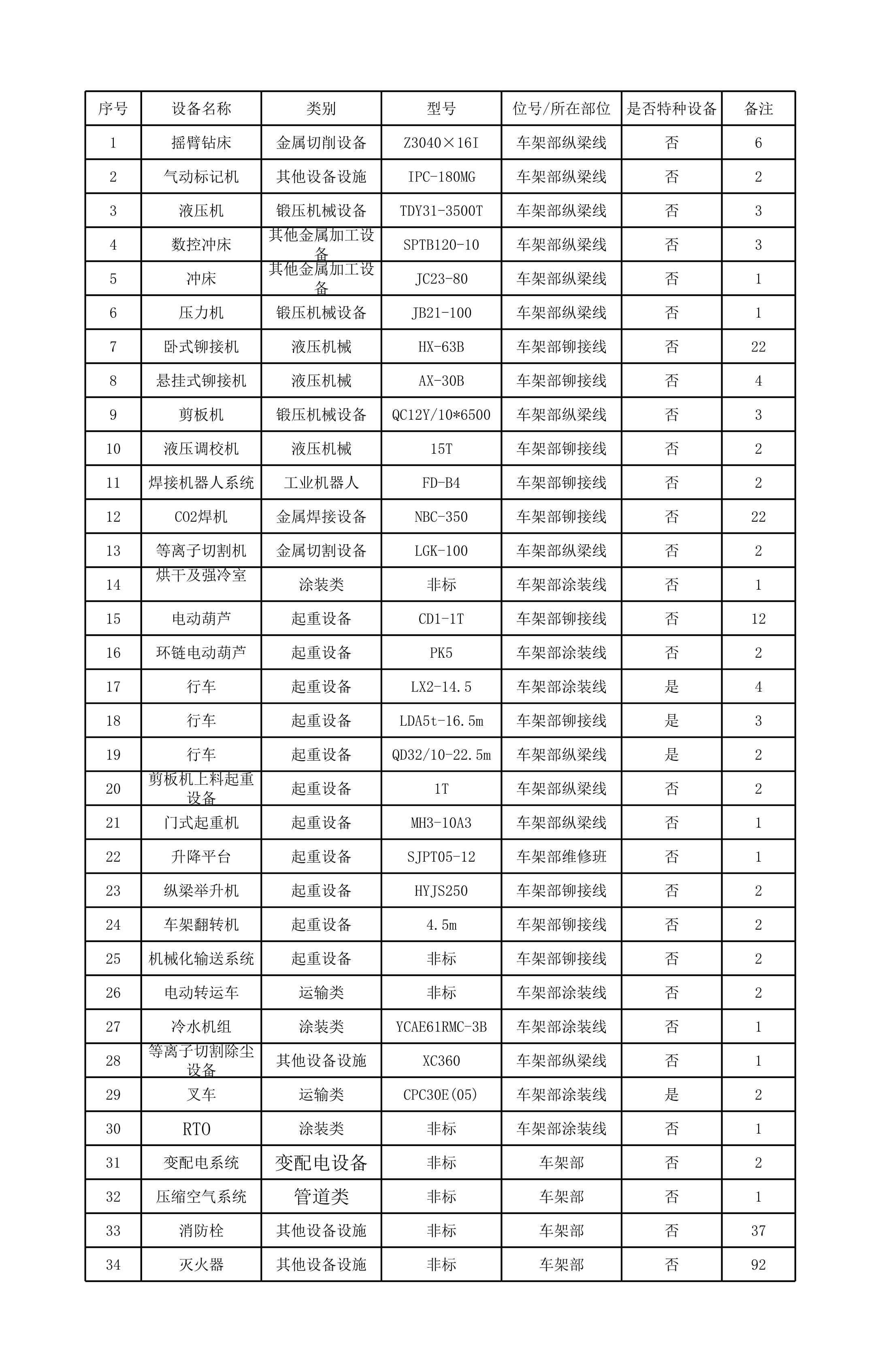汽车制造行业企业设备设施清单成果[表格]
