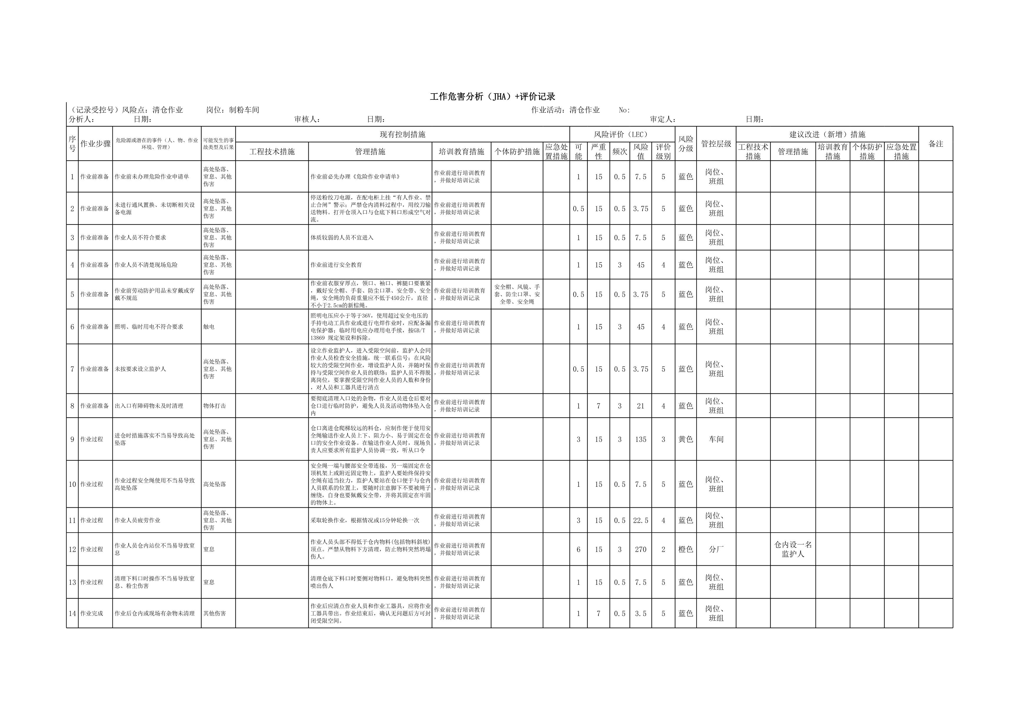 / 清仓作业(JHA)评价记录[表格]