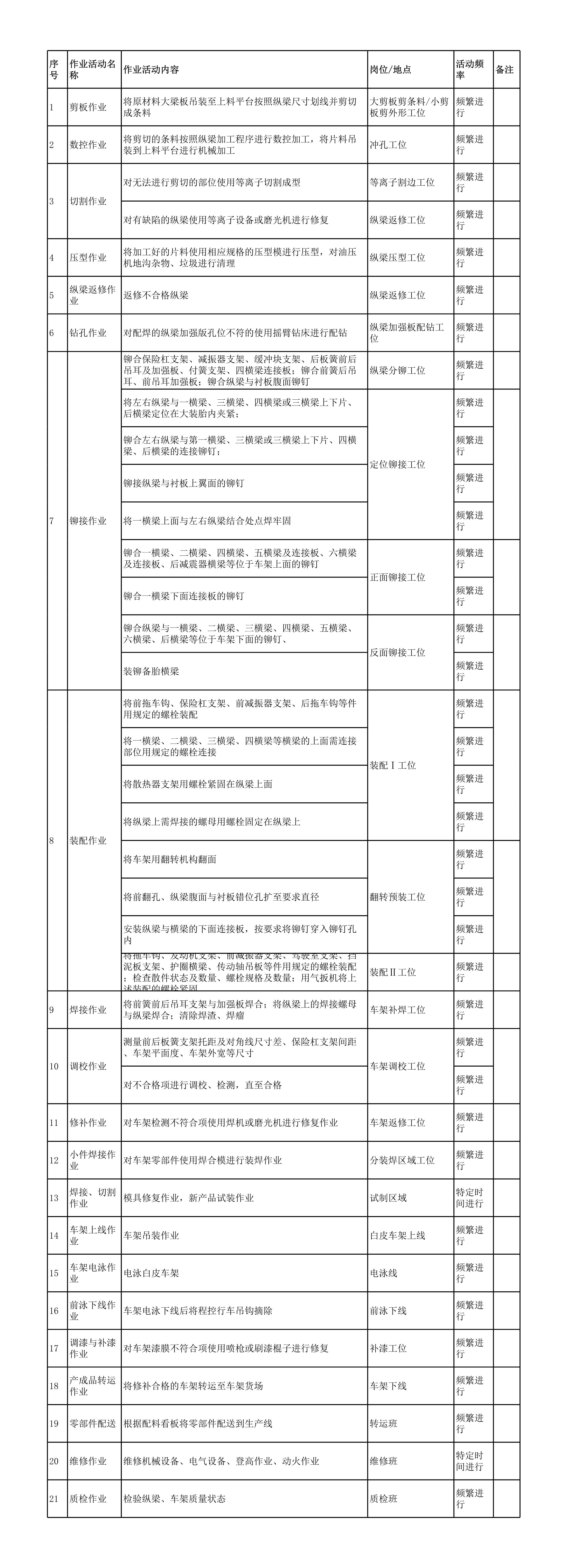 / 汽车制造行业企业作业活动清单成果[表格]