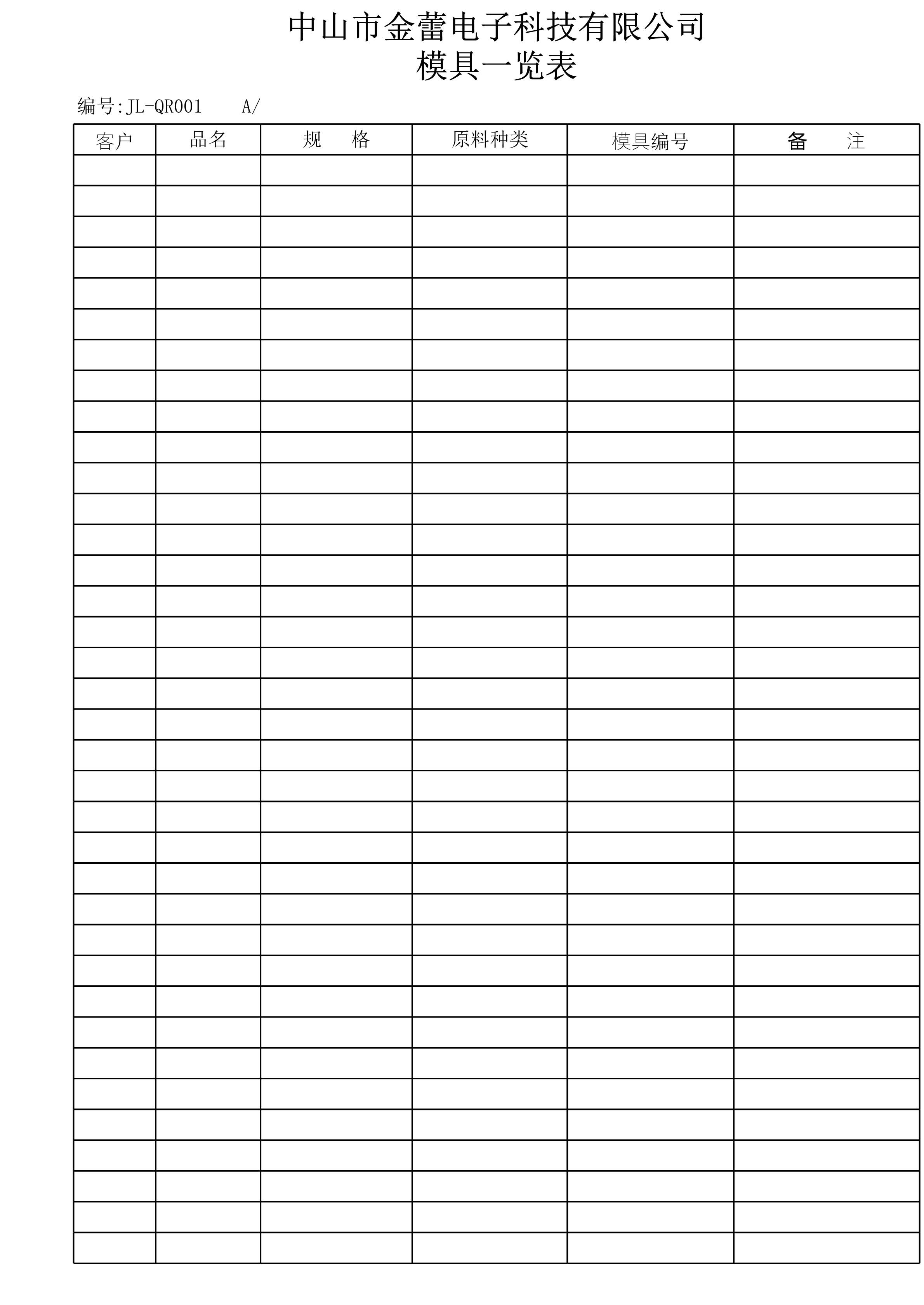 模具一览表[表格]