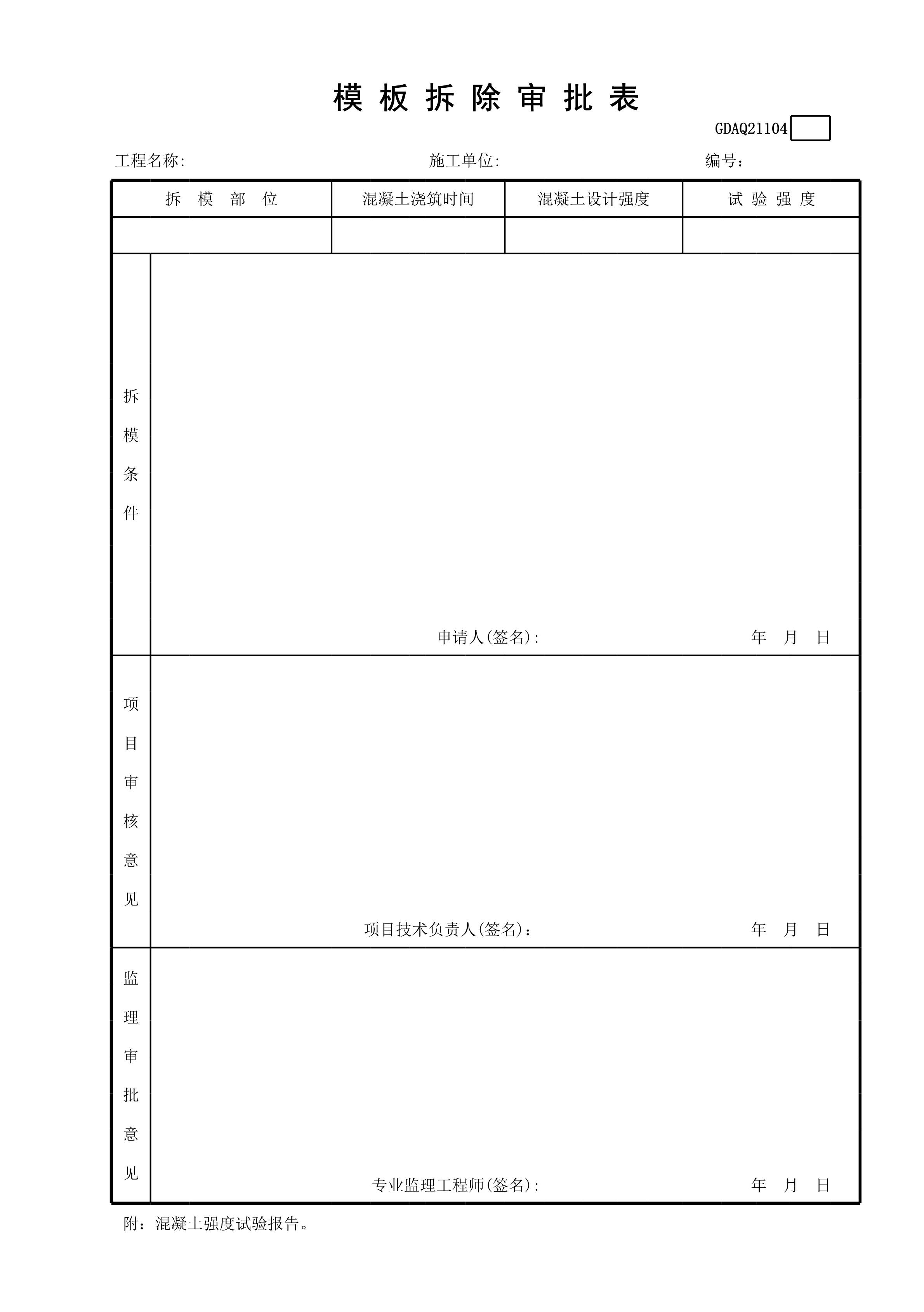 / 模板拆除审批表GDAQ21104[表格]