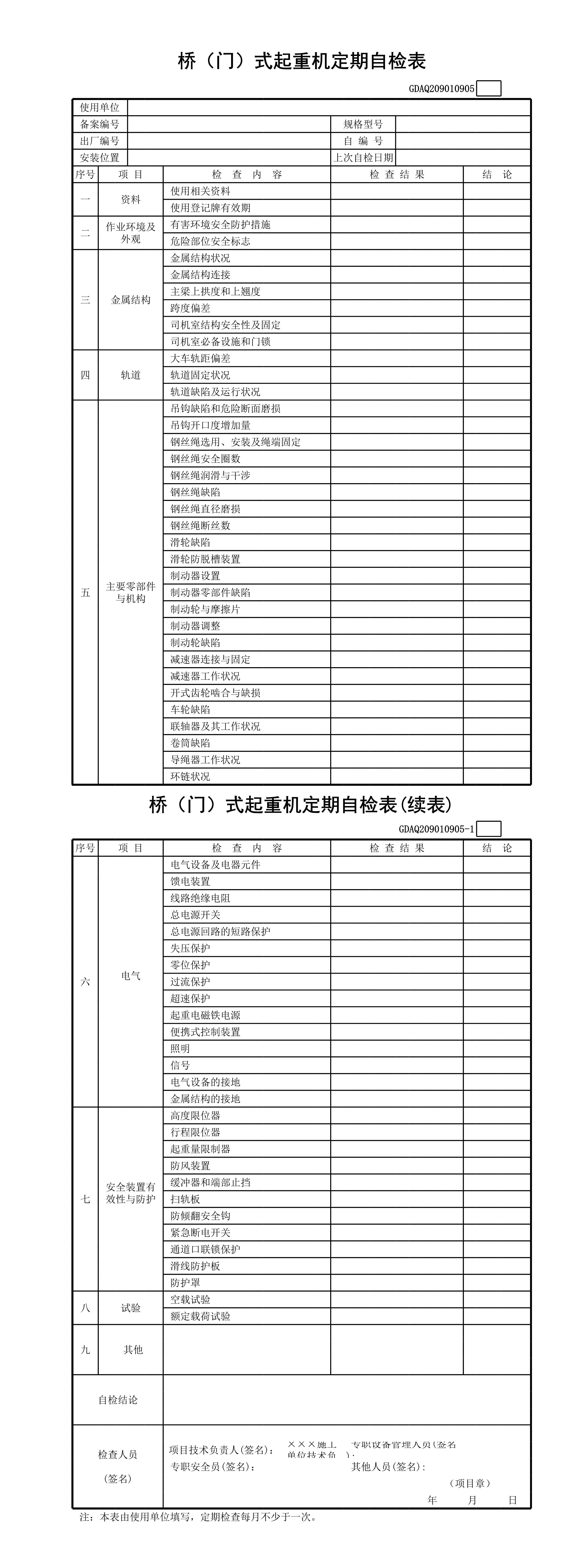 桥(门)式起重机定期自检表(含续表)GDAQ209010905[表格]