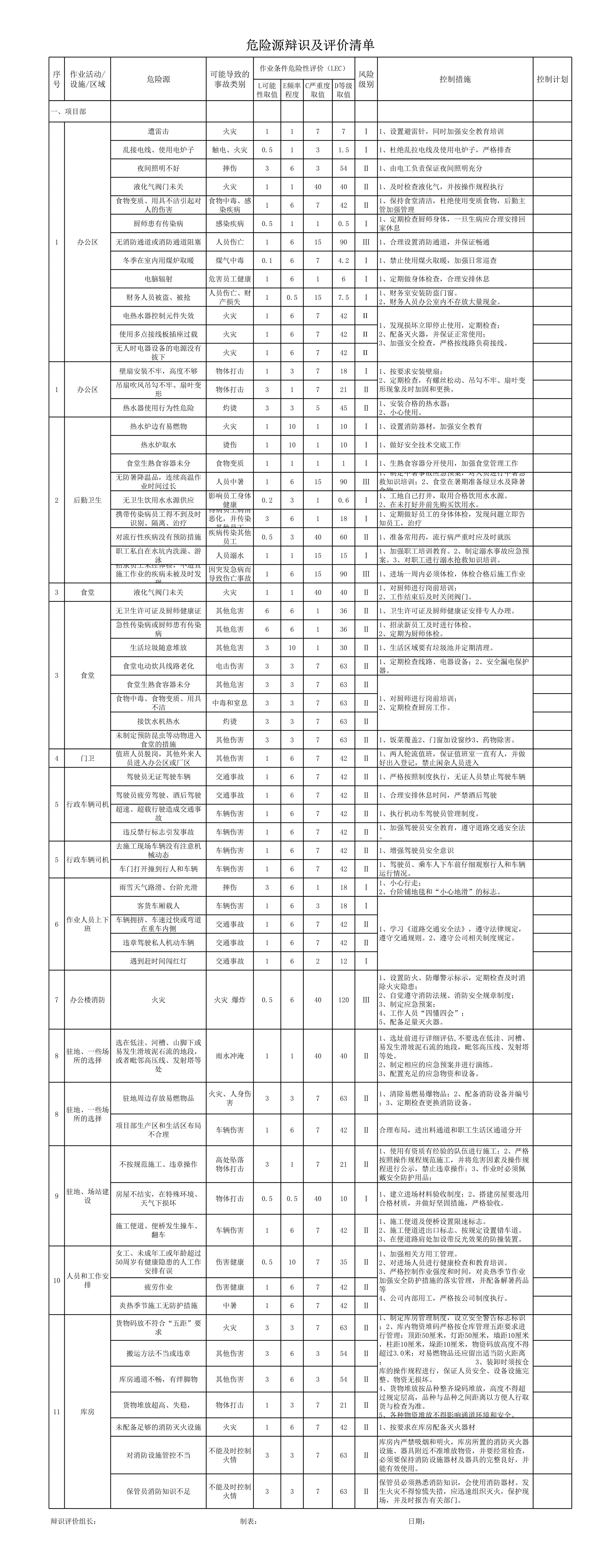 / 全套危险源辨识与风险评价清单[表格]