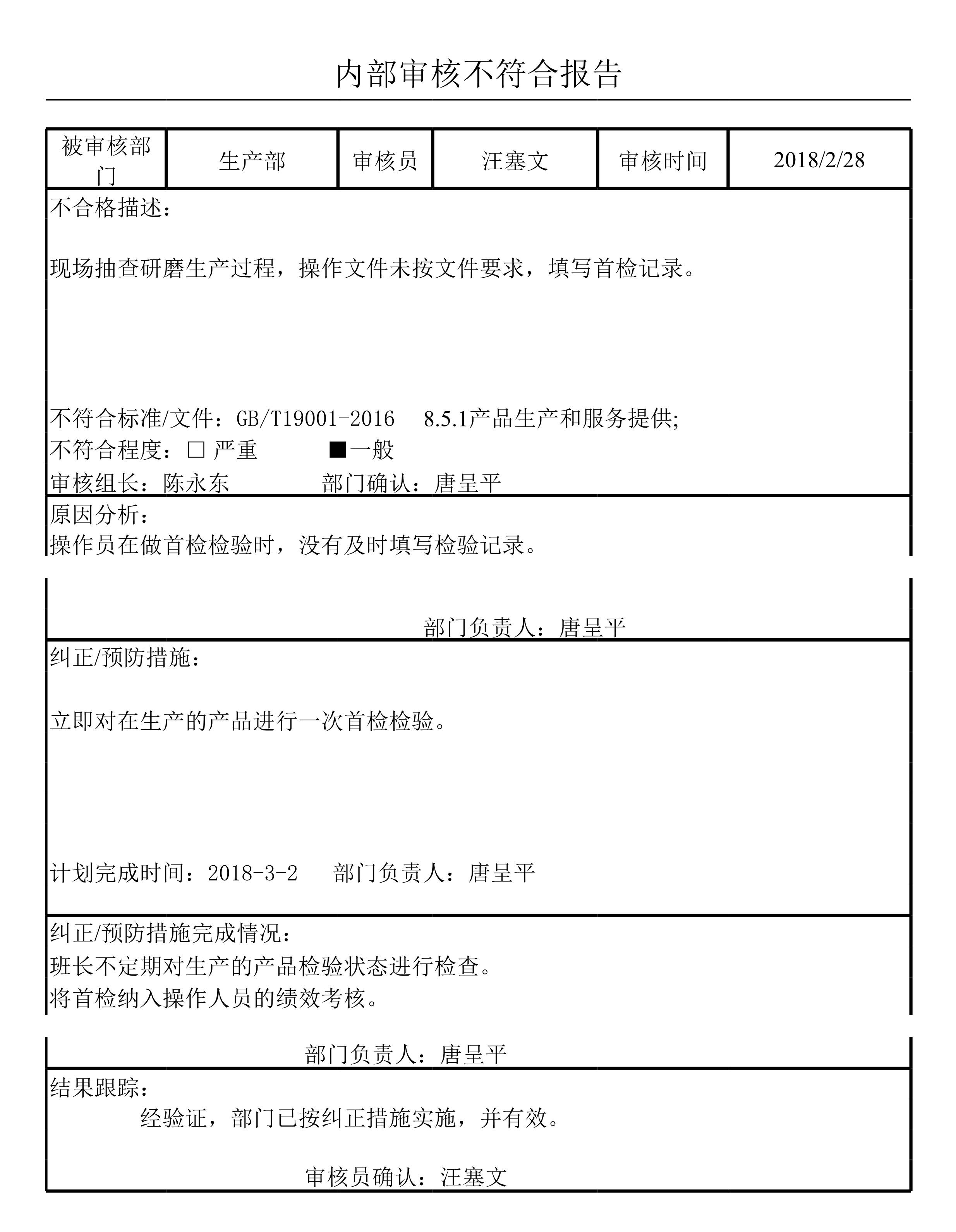 内审不符合报告[表格]