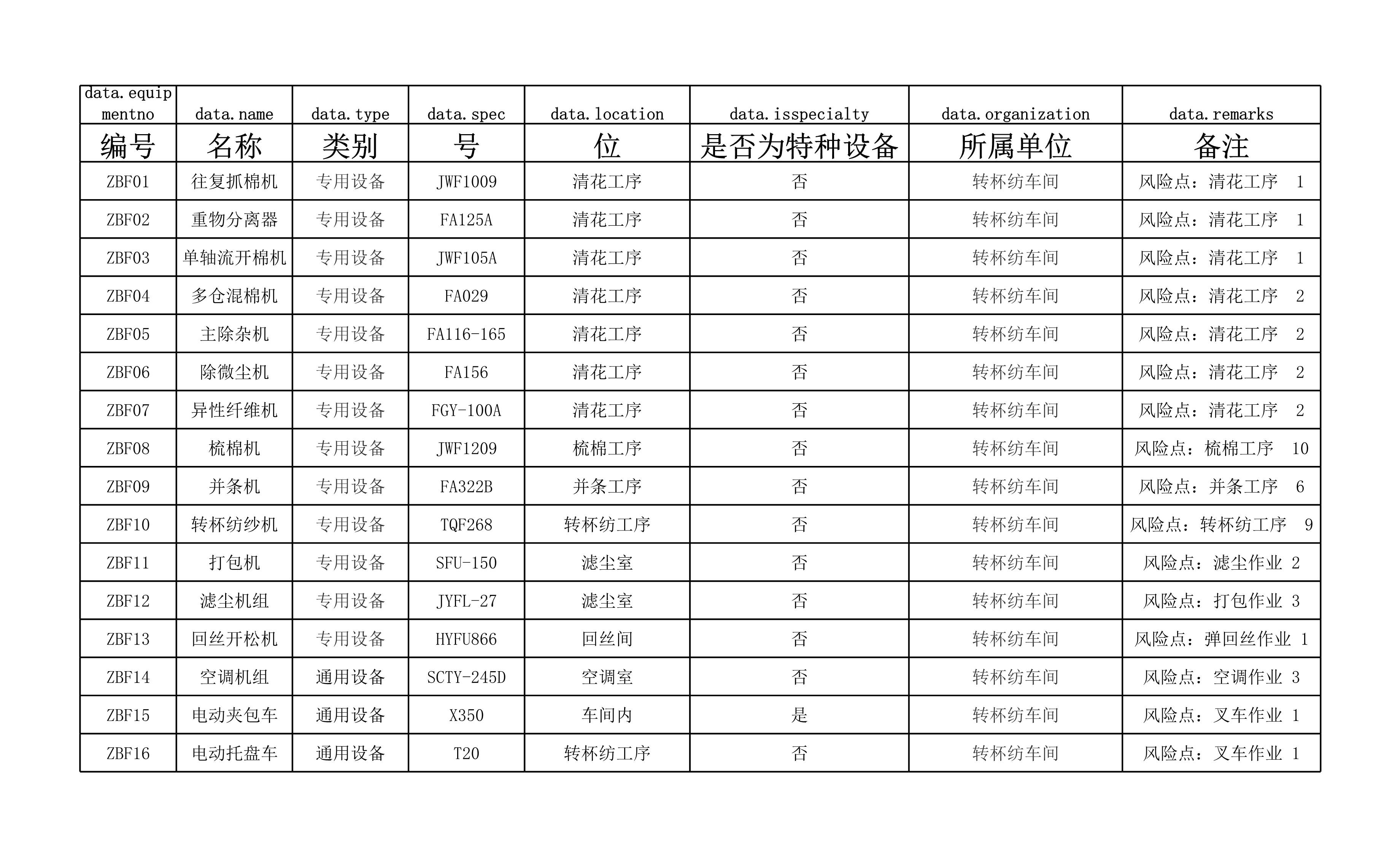 / 转杯纺车间设备设施清单[表格]