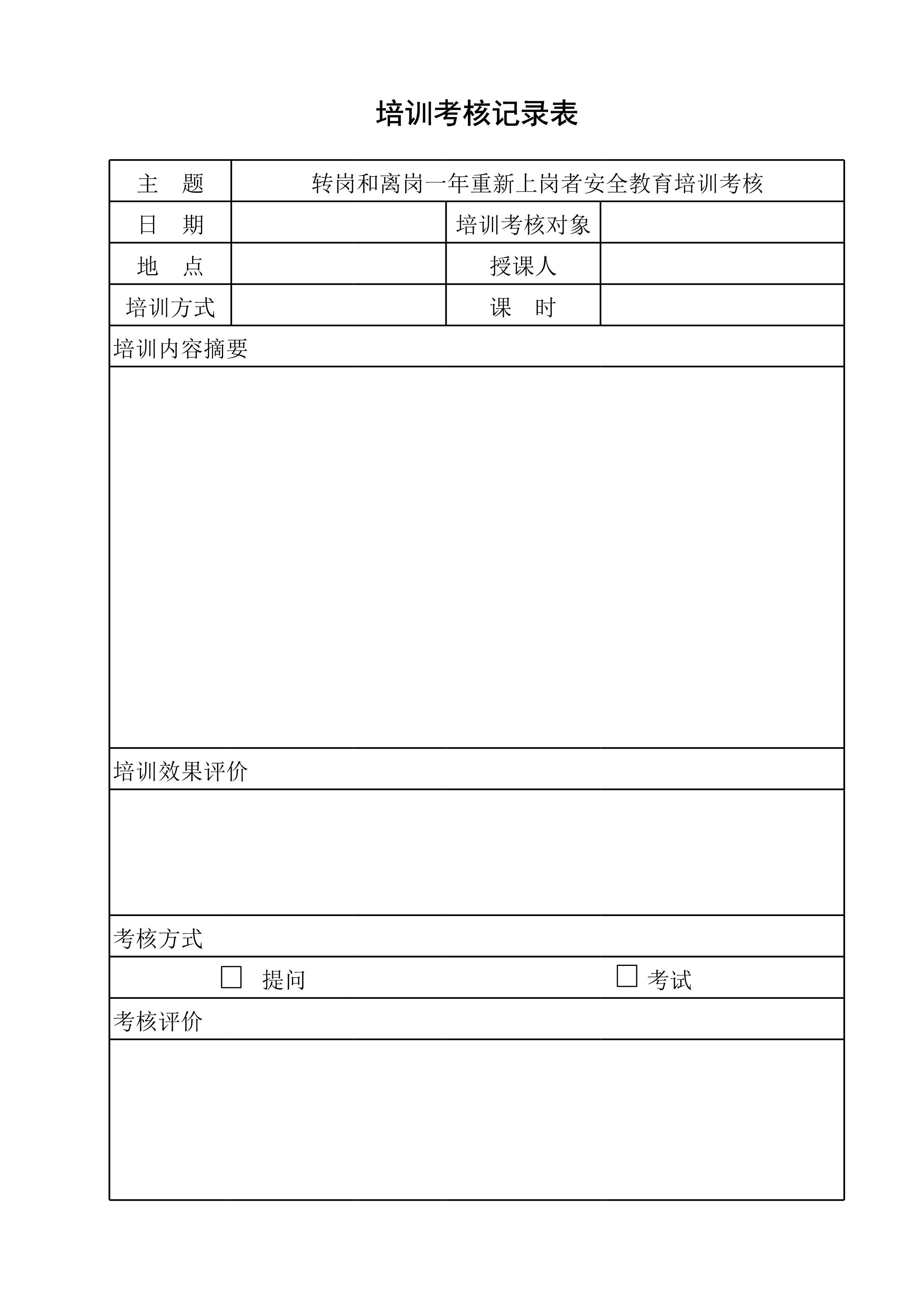 / 转岗和离岗一年重新上岗者安全教育培训考核表[表格]