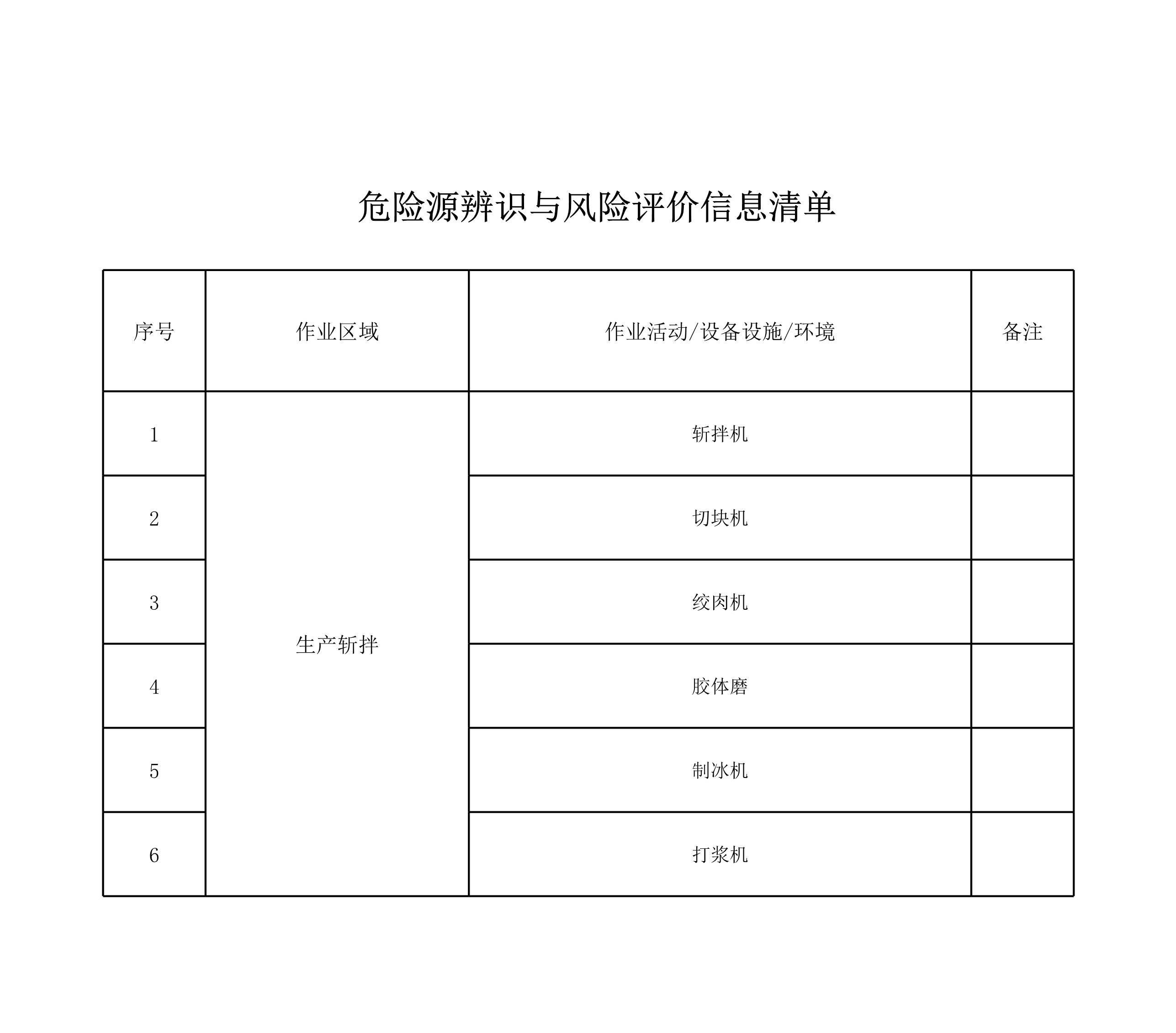 斩拌工序危险源辨识与风险评价信息表[表格]