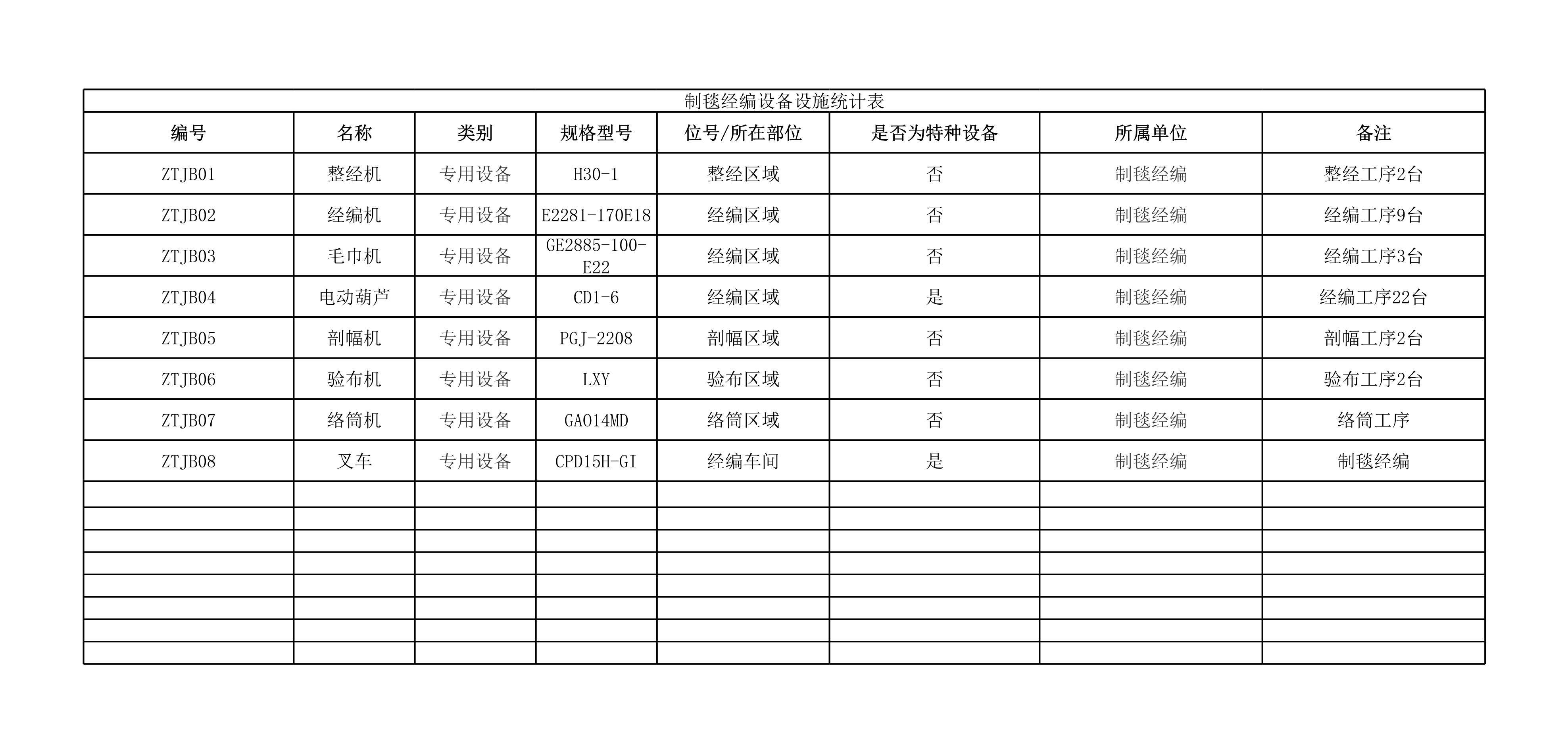 / 制毯经编设备设施清单[表格]
