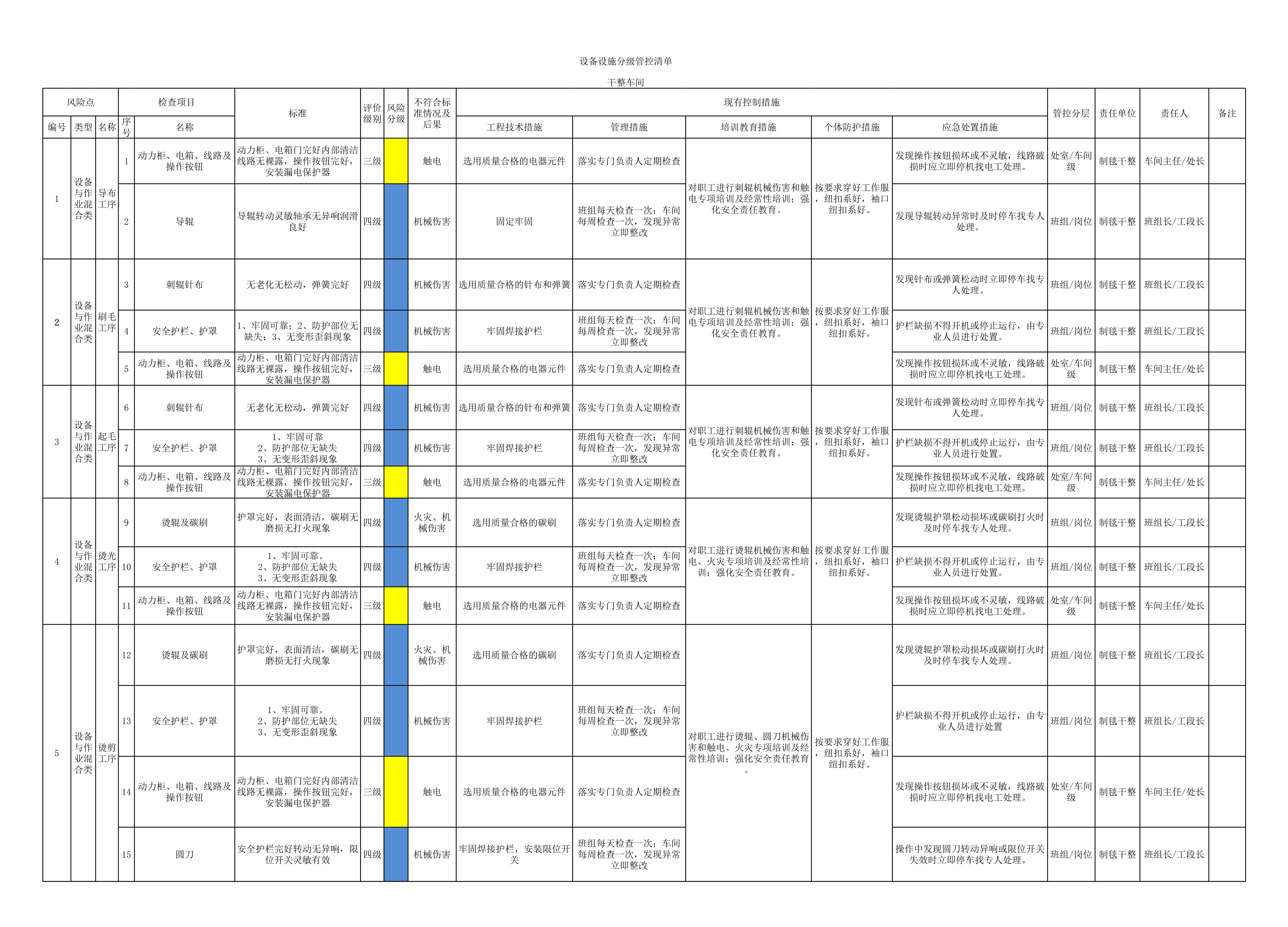 / 制毯干整设备设施风险分级管控清单[表格]