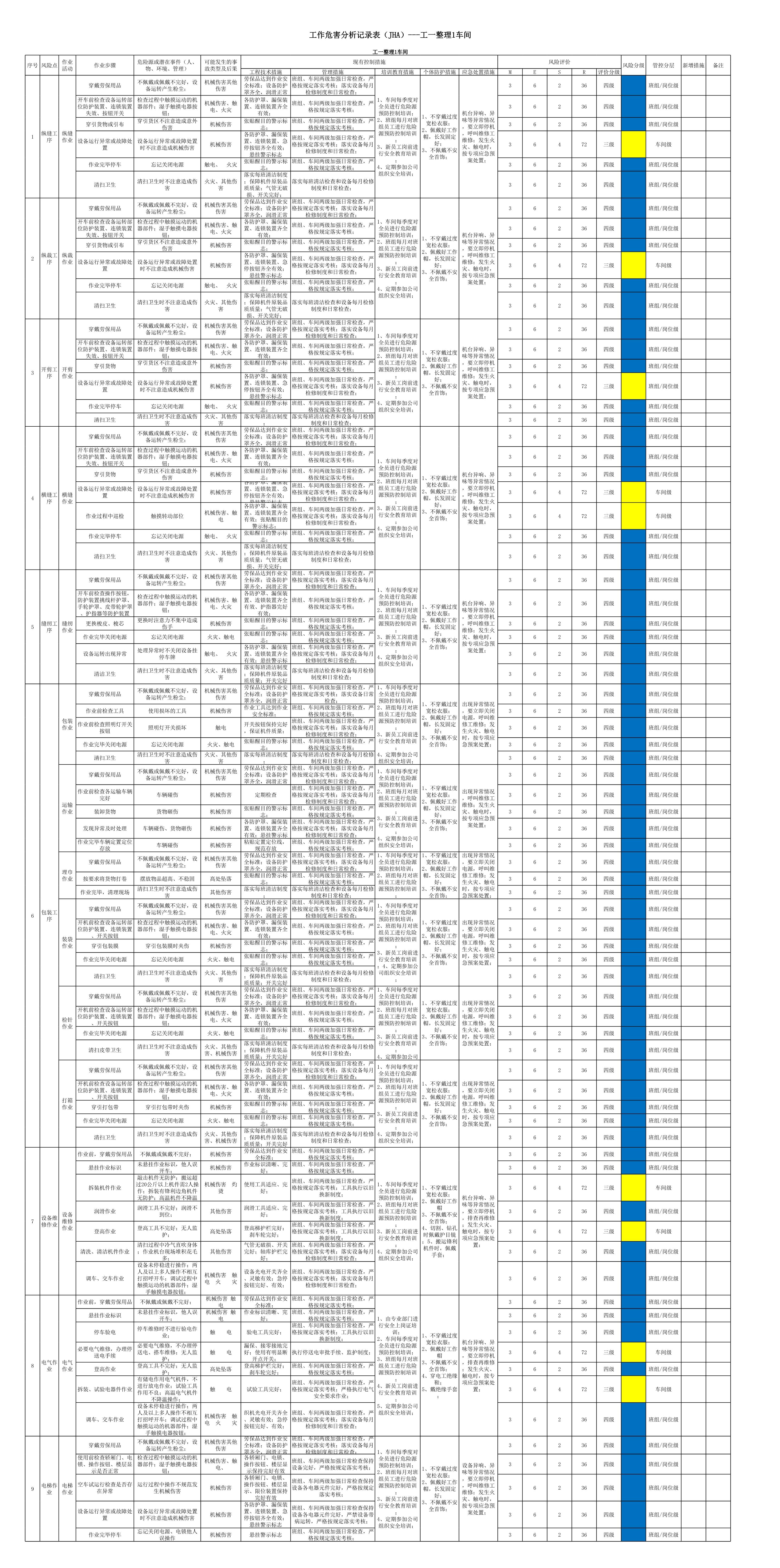 一号横向(JHA)评价记录[表格]