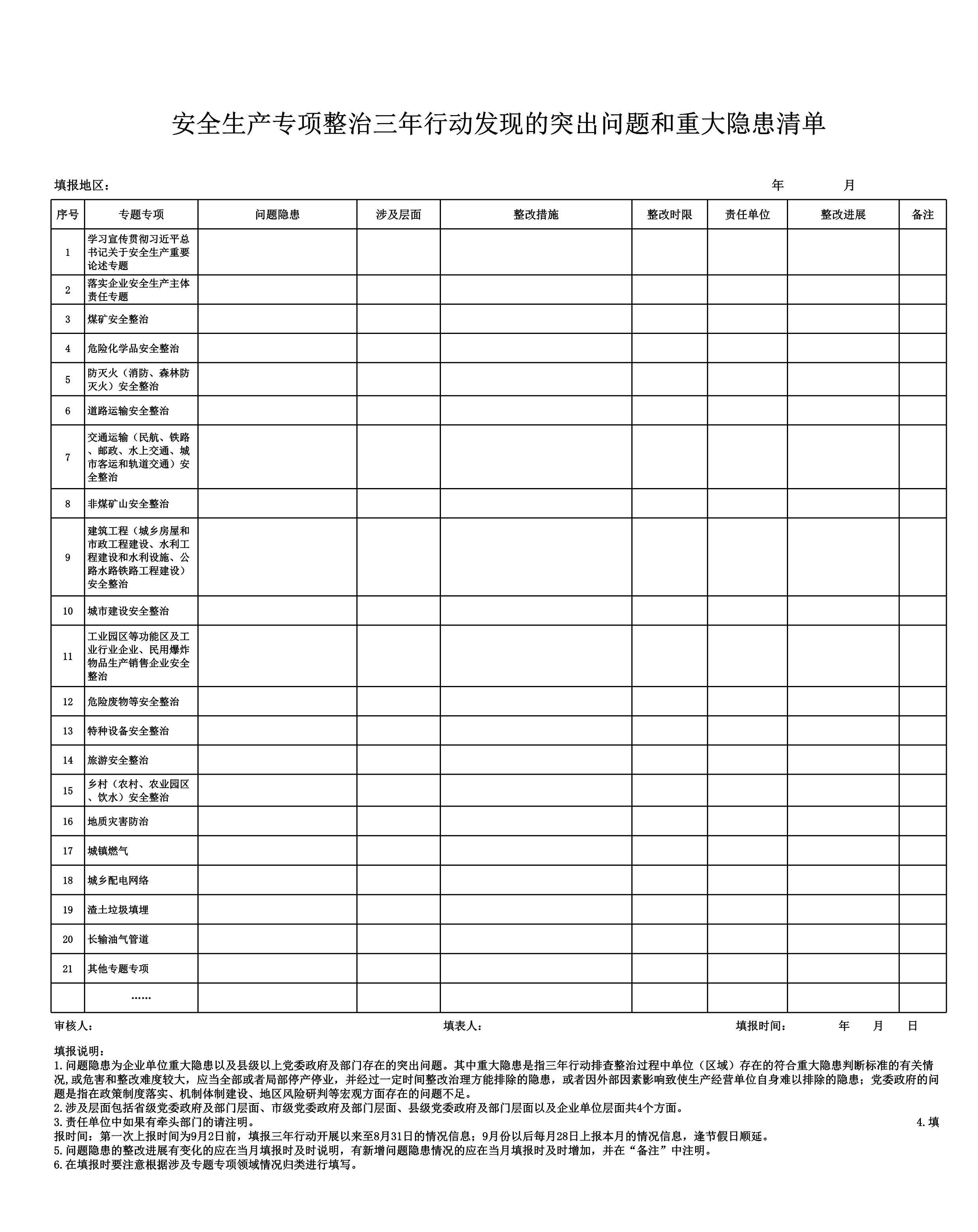 / 问题隐患和制度措施“两个清单” (1)[表格]