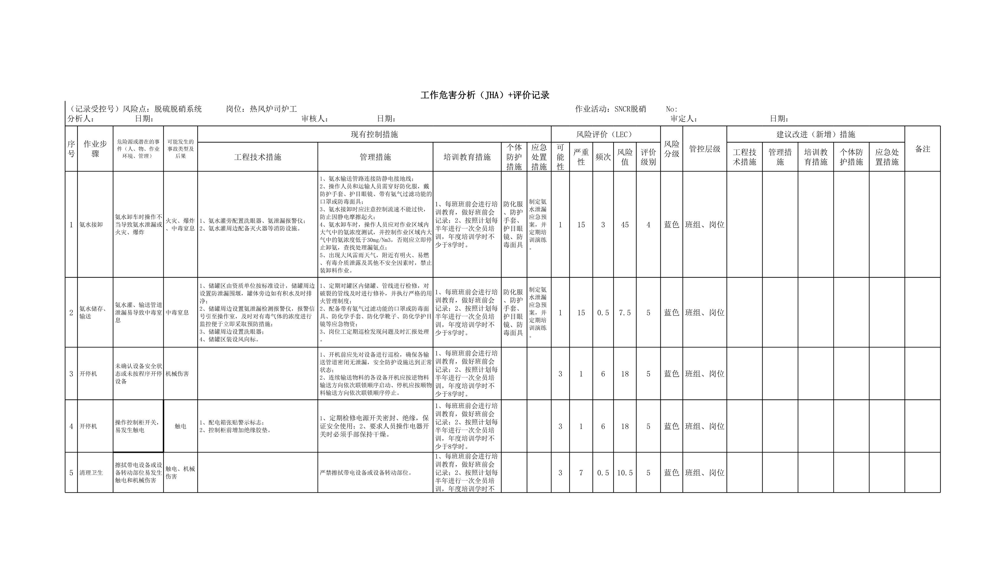 / 脱硫脱销系统(JHA)评价记录[表格]