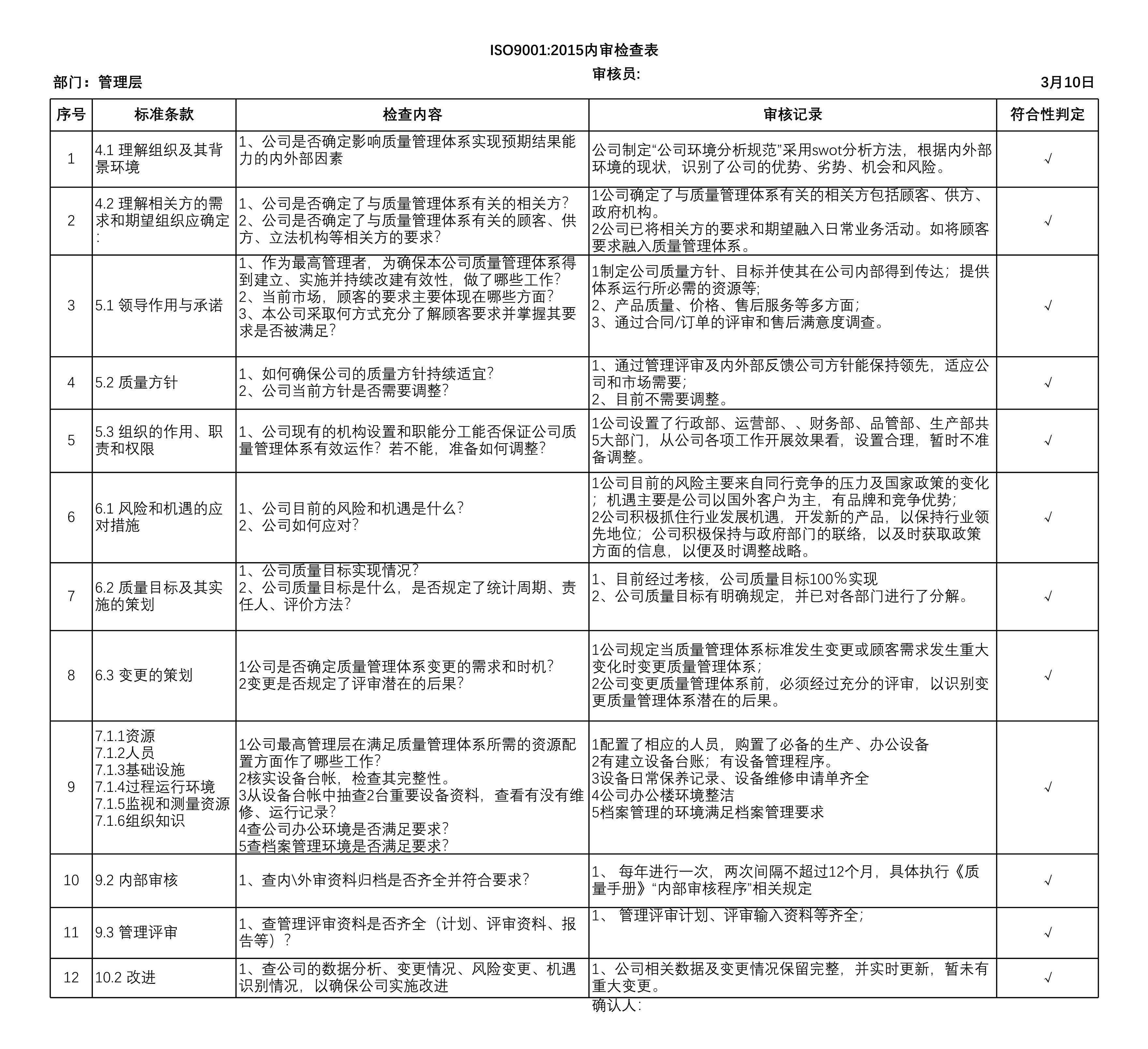 内审检查表[表格]
