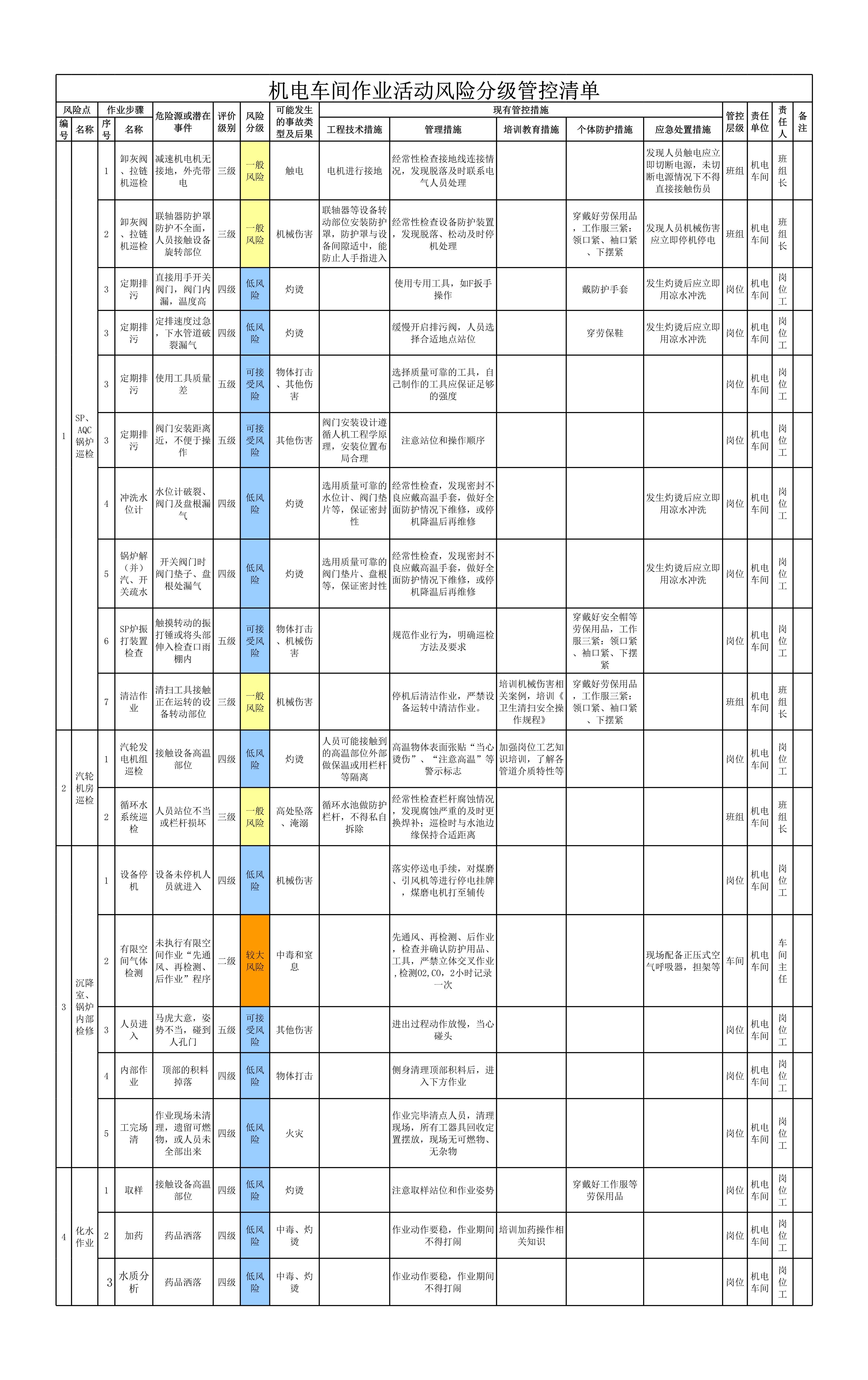 / 机电车间--作业活动风险分级管控清单[表格]
