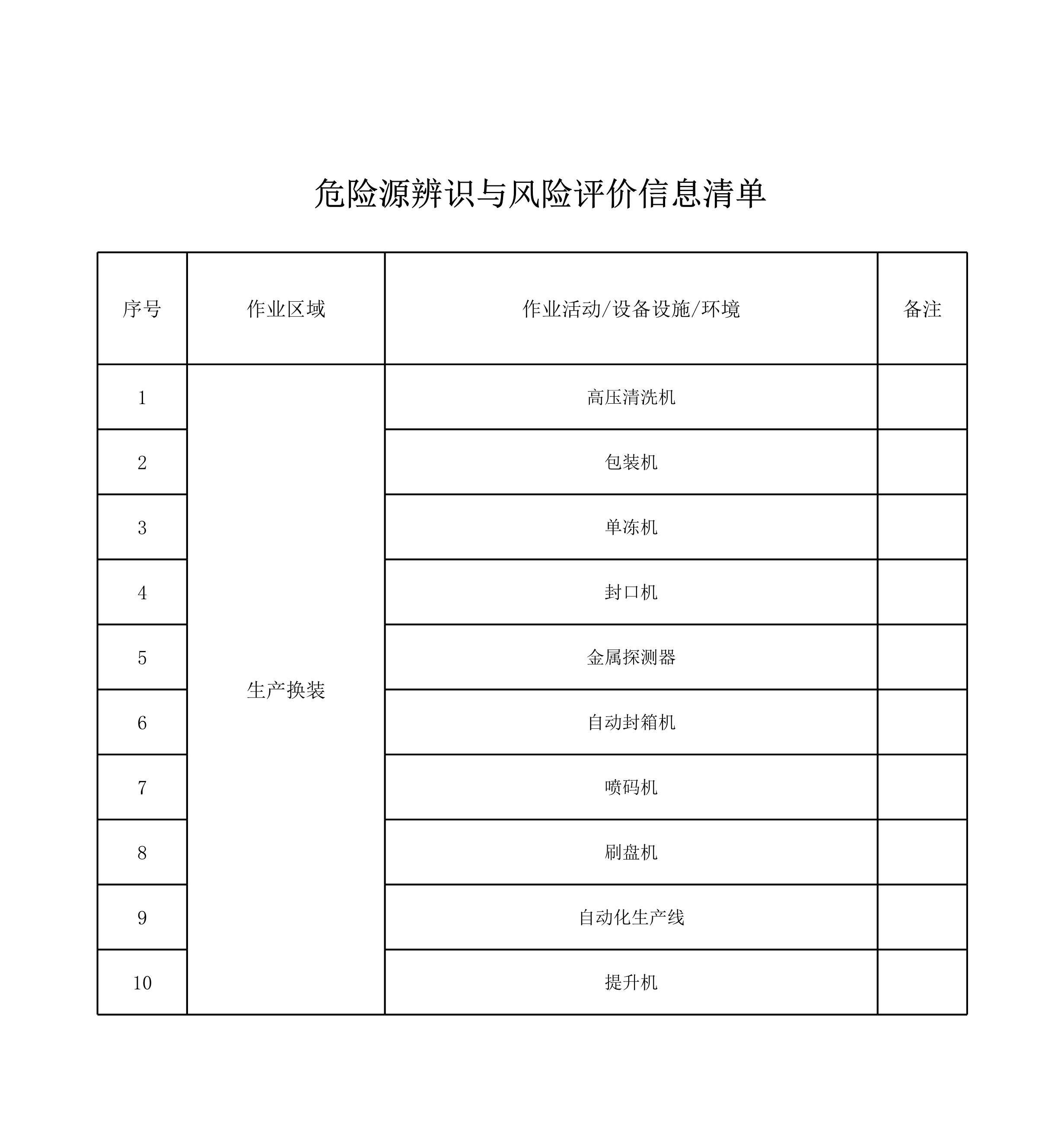 / 换装工序危险源辨识与风险评价信息表[表格]