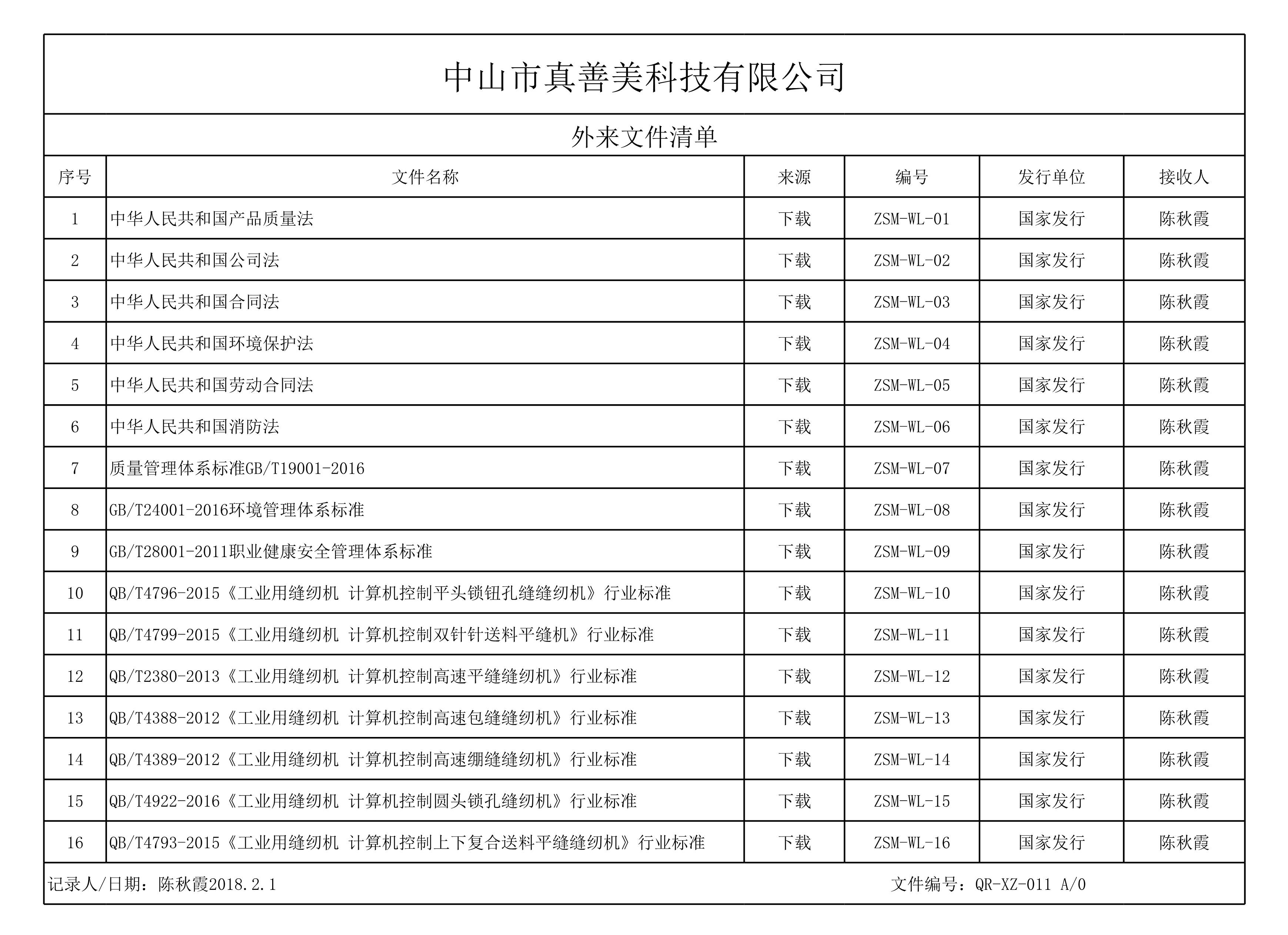 2025外来文件清单[表格]