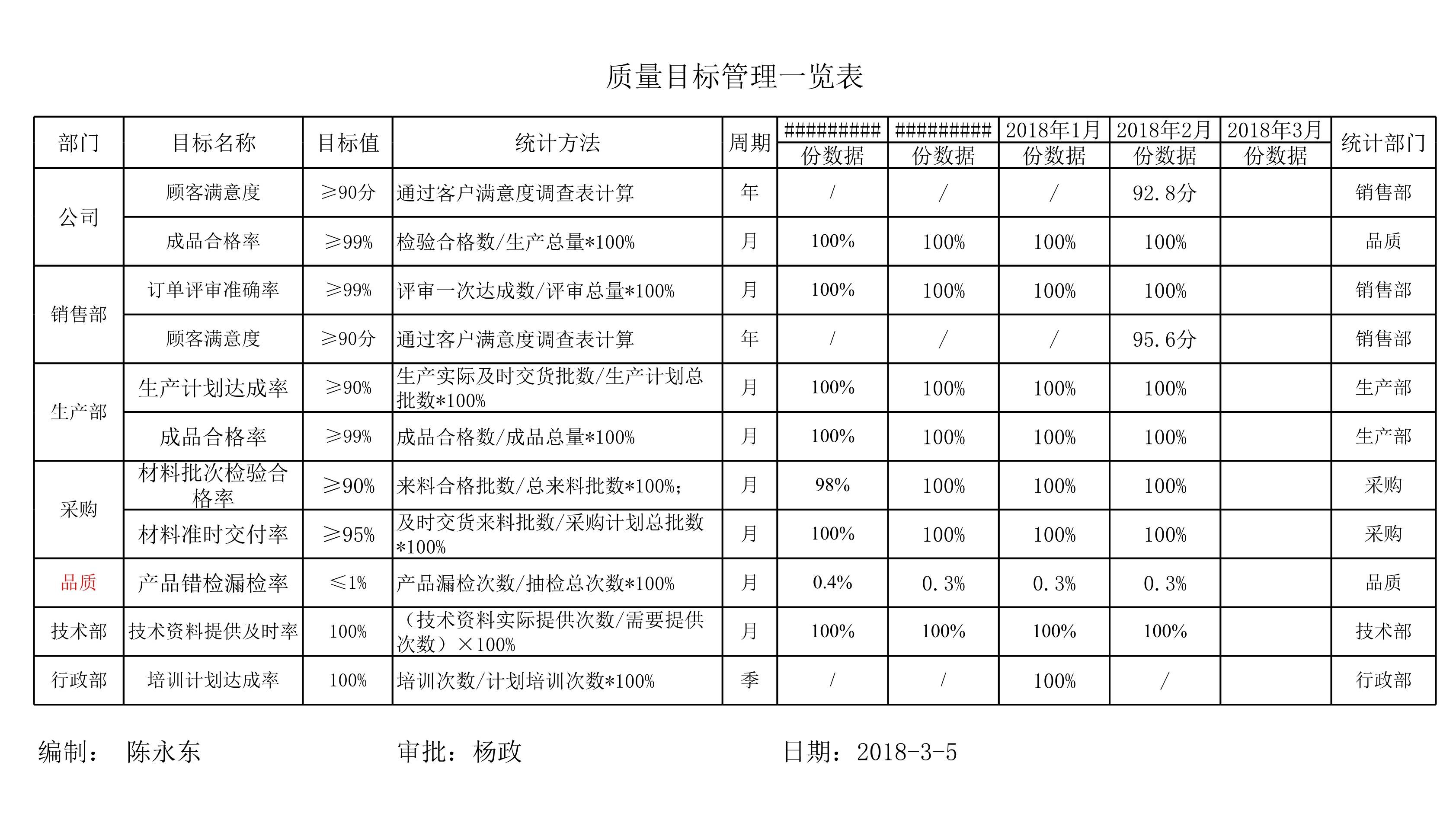 质量目标管理一览表[表格]