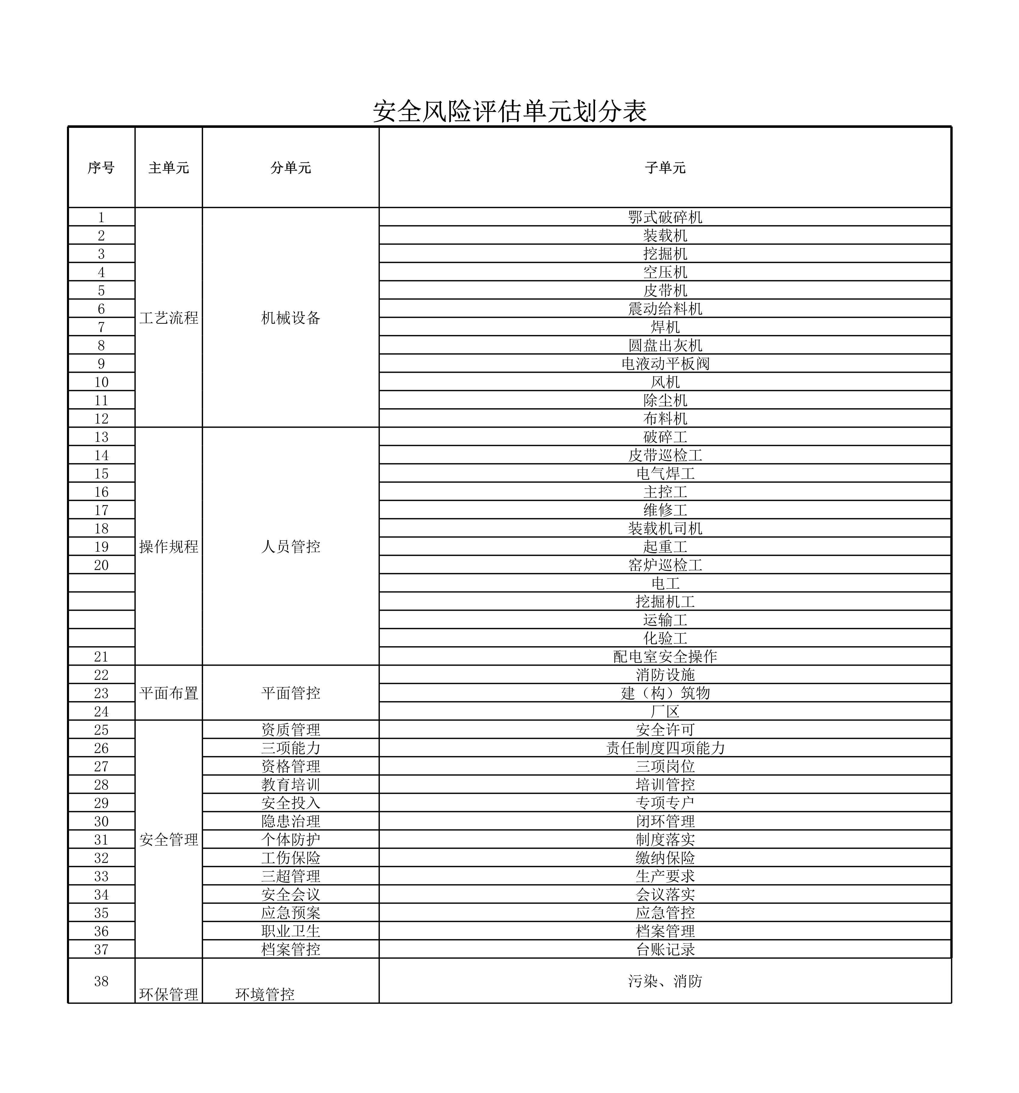 / 石灰窑安全单元划分,风险辨识管控,各级隐患排查清单(五级)[表格]